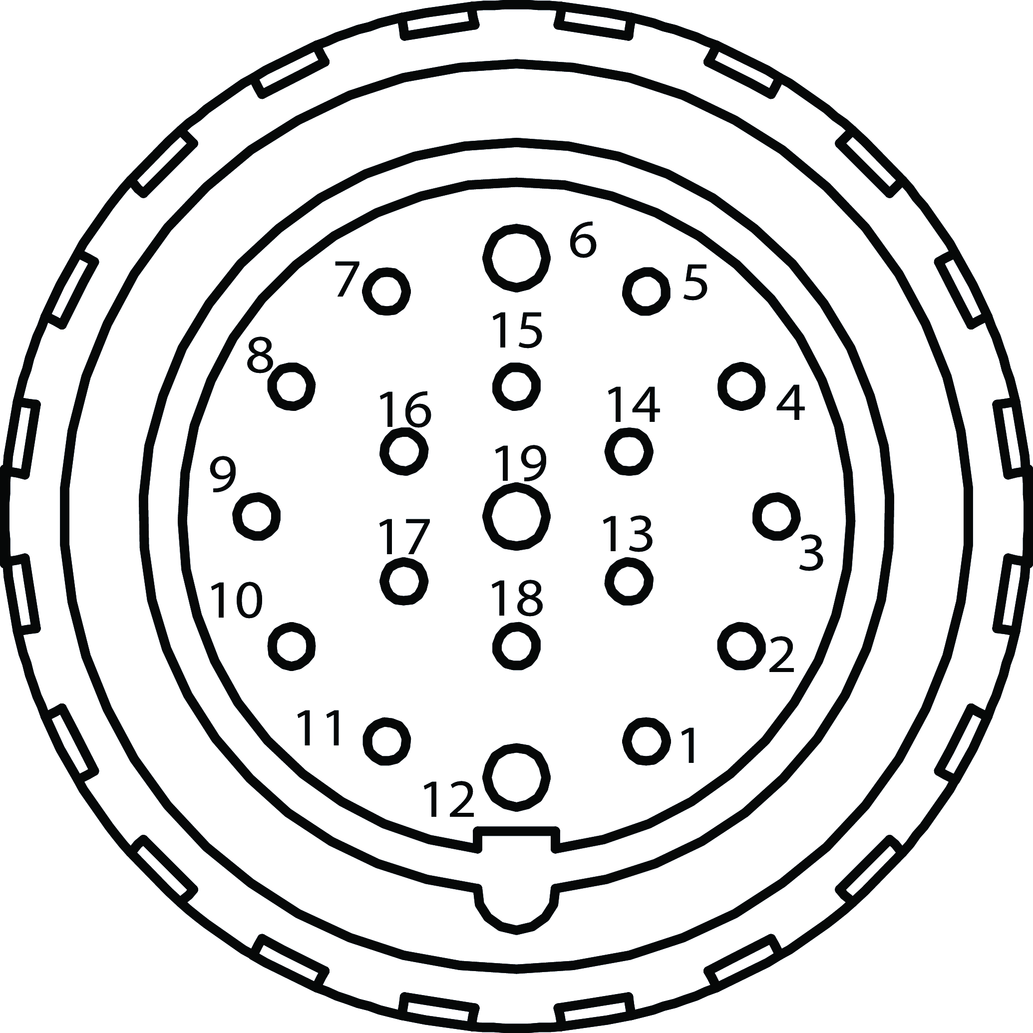 | 1 | Zástrčka s dutinkami a převlečnou maticí M23, 19pól., s pružinou pro stínění |