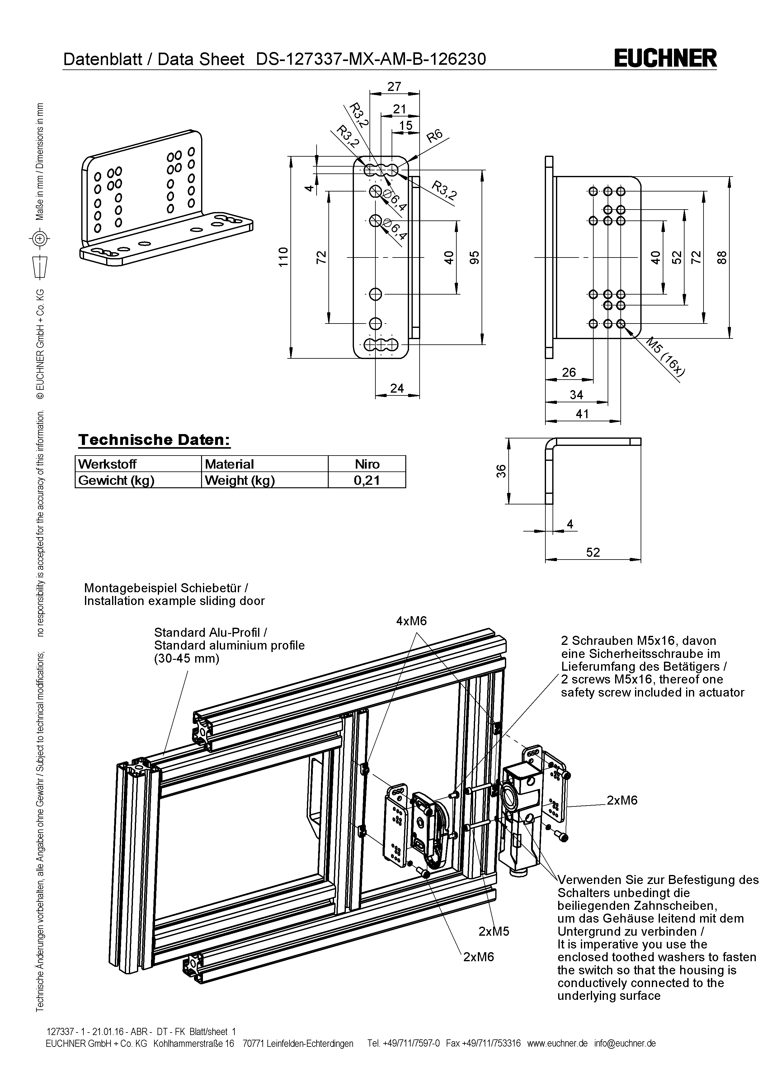 12 šrouby M5 × 16, z toho jeden bezpečnostní šroub součástí dodávky aktuátoru