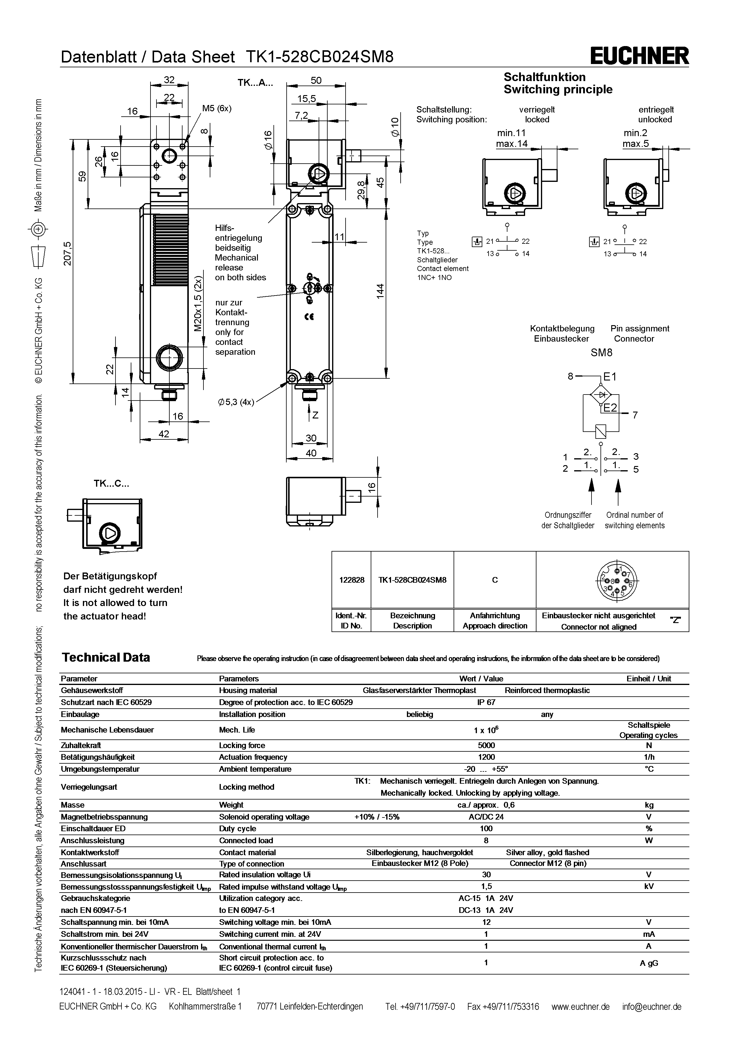 Bezpečnostní spínač TK, konektor M12