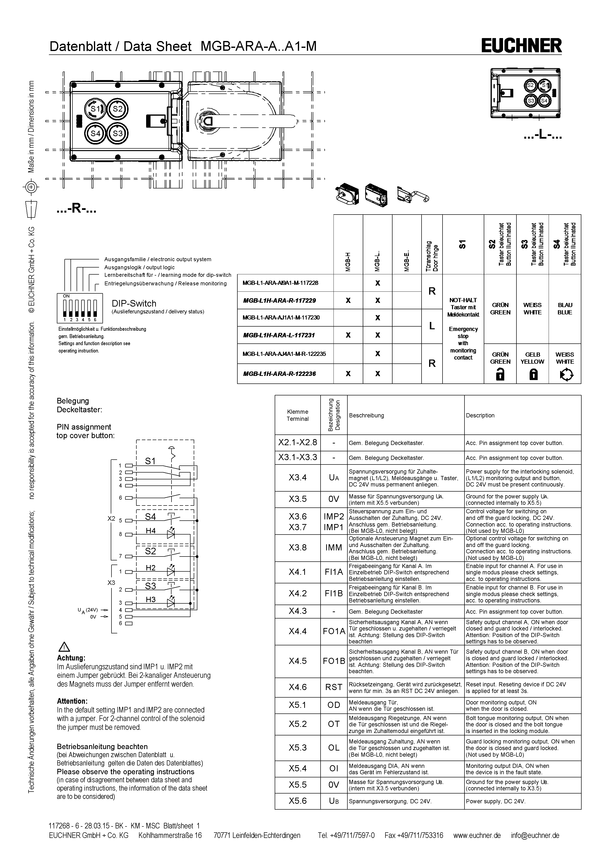 | 1 | Se signalizačním kontaktem | Nouzové zastavení | 2× nuceně rozpínaný kontakt + 1× spínací kontakt | ||||||