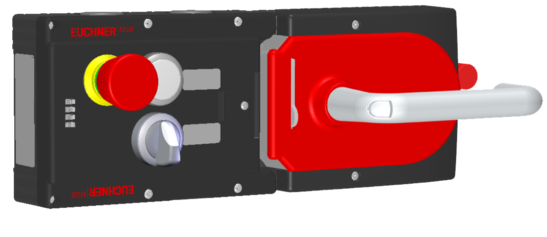 Jisticí sada MGB-L1HE-ARA..., (jištění ochranného krytu silou pružiny) 1× tlačítko, nouzové zastavení, otočný spínač