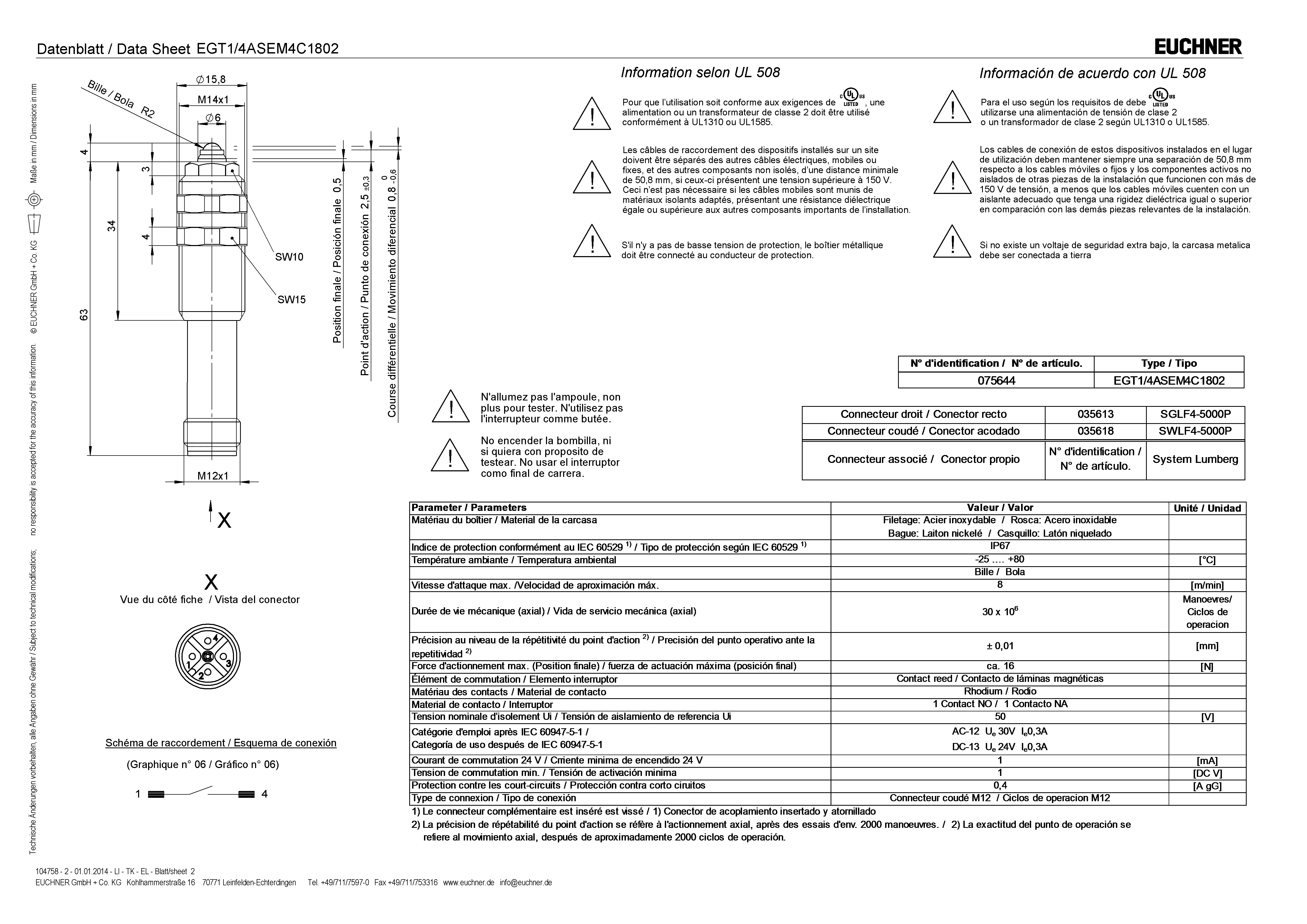 Mode d’emploi Interrupteurs de position de précision EGT avec contacts Reed