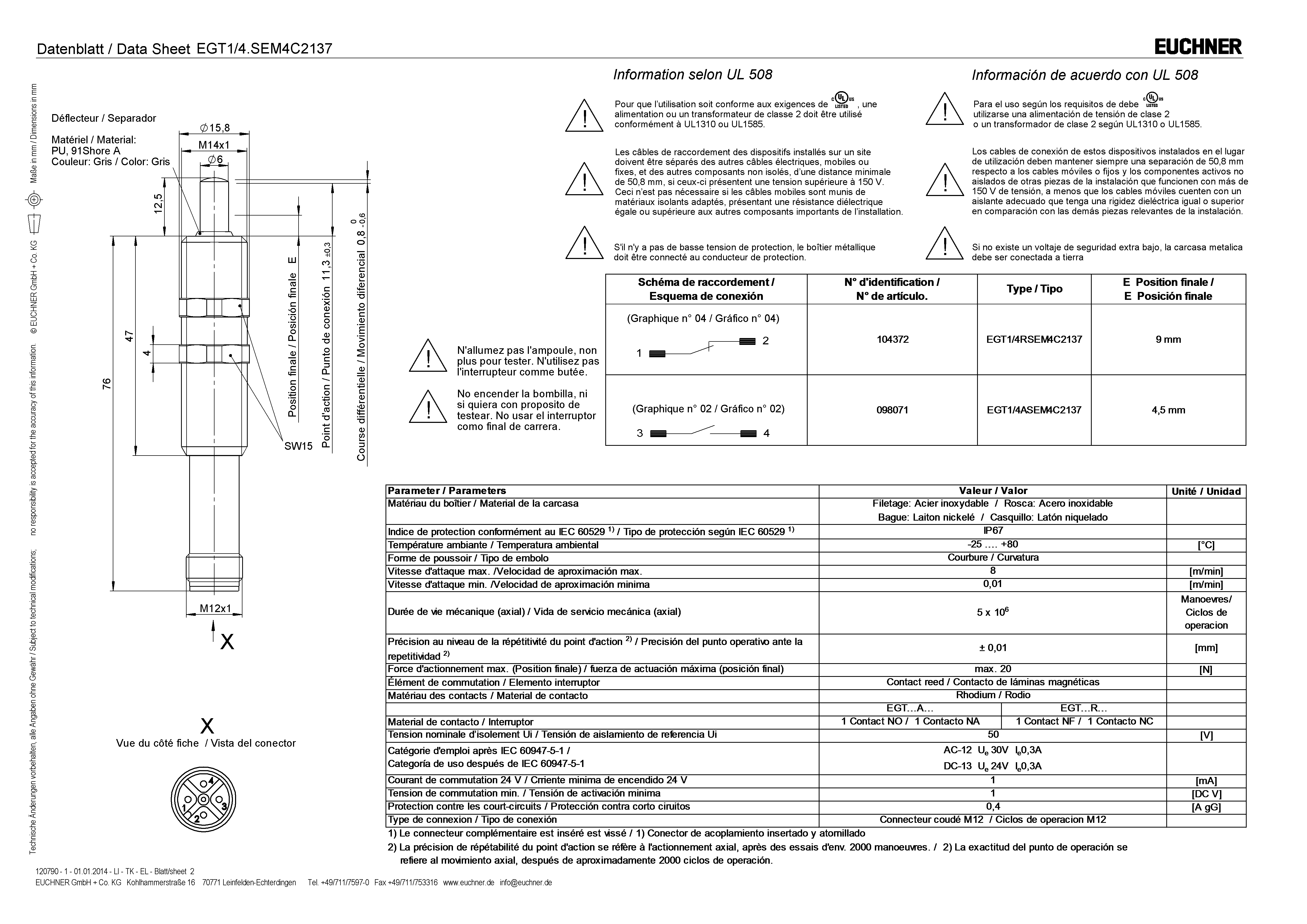 Mode d’emploi Interrupteurs de position de précision EGT avec contacts Reed