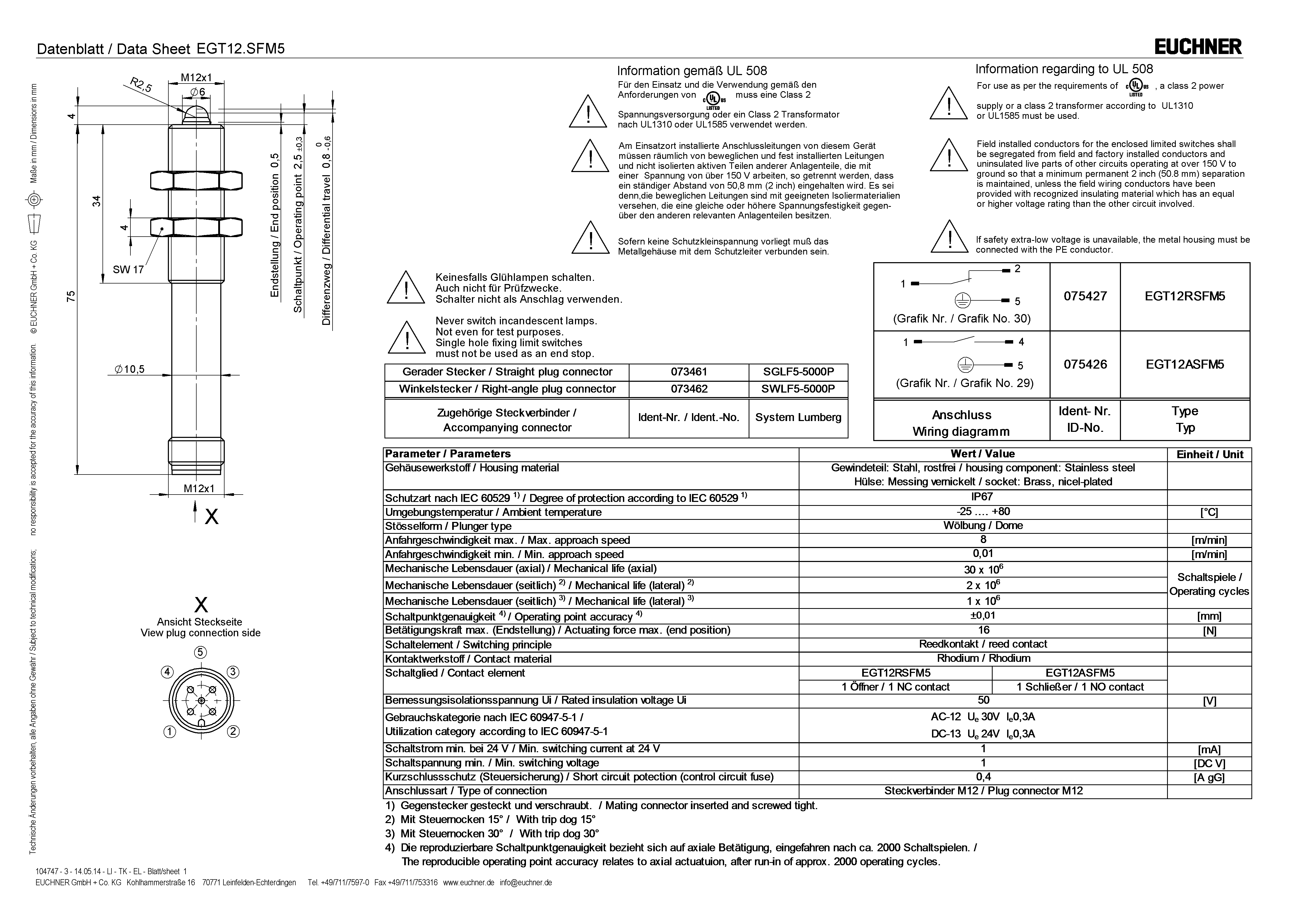 Betriebsanleitung Präzisions-Einbaugrenztaster EGT mit Reed-Kontakten