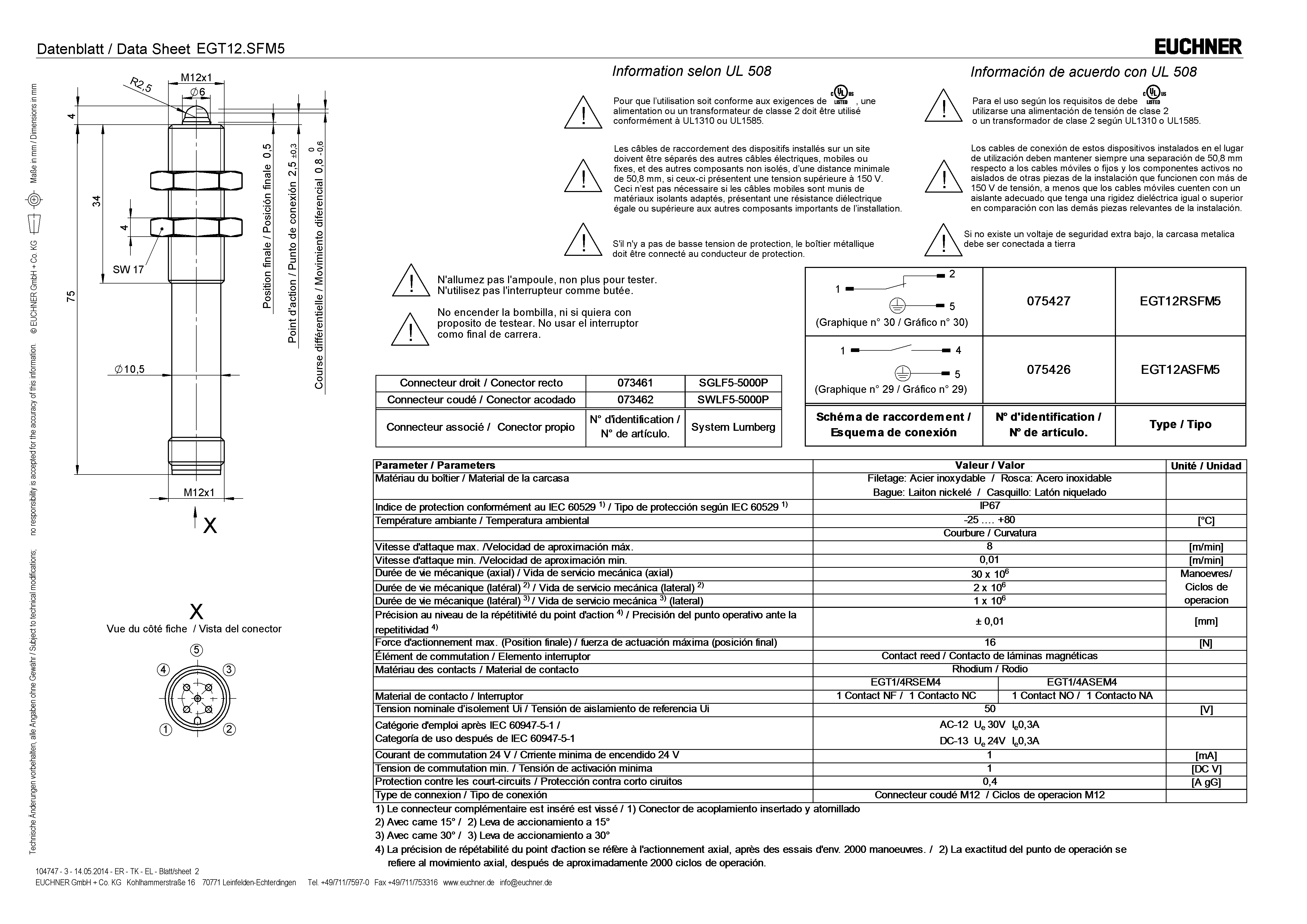 Mode d’emploi Interrupteurs de position de précision EGT avec contacts Reed