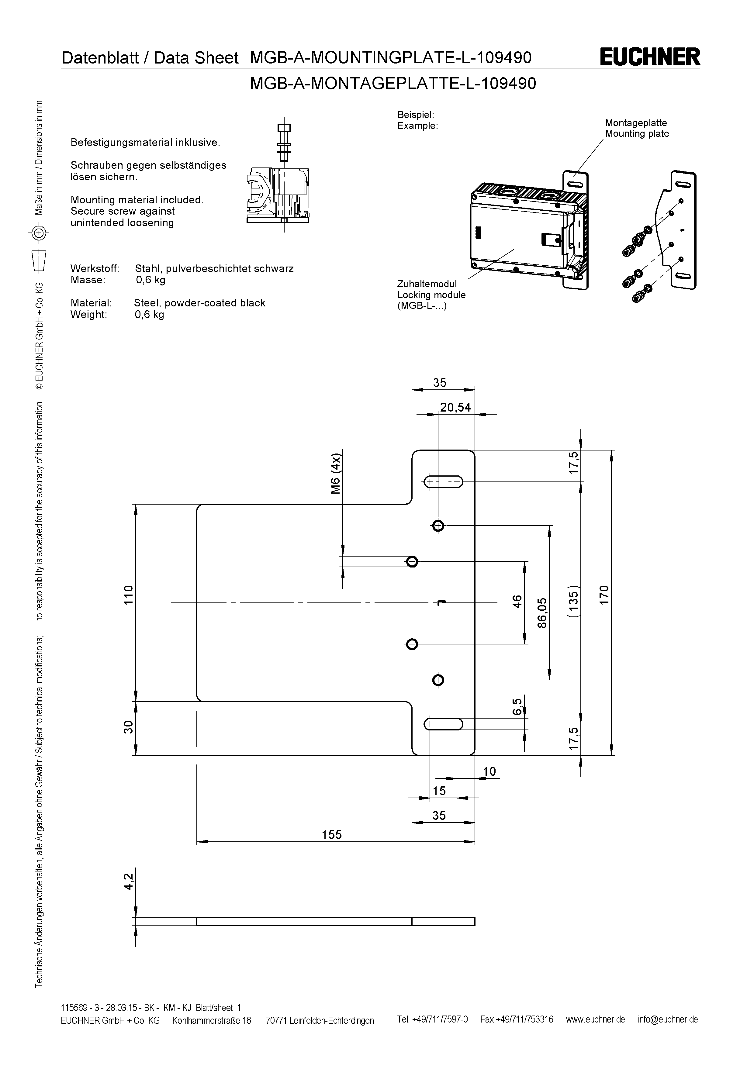 | Additional feature | incl. fixing material for MGB-L on mounting plate |