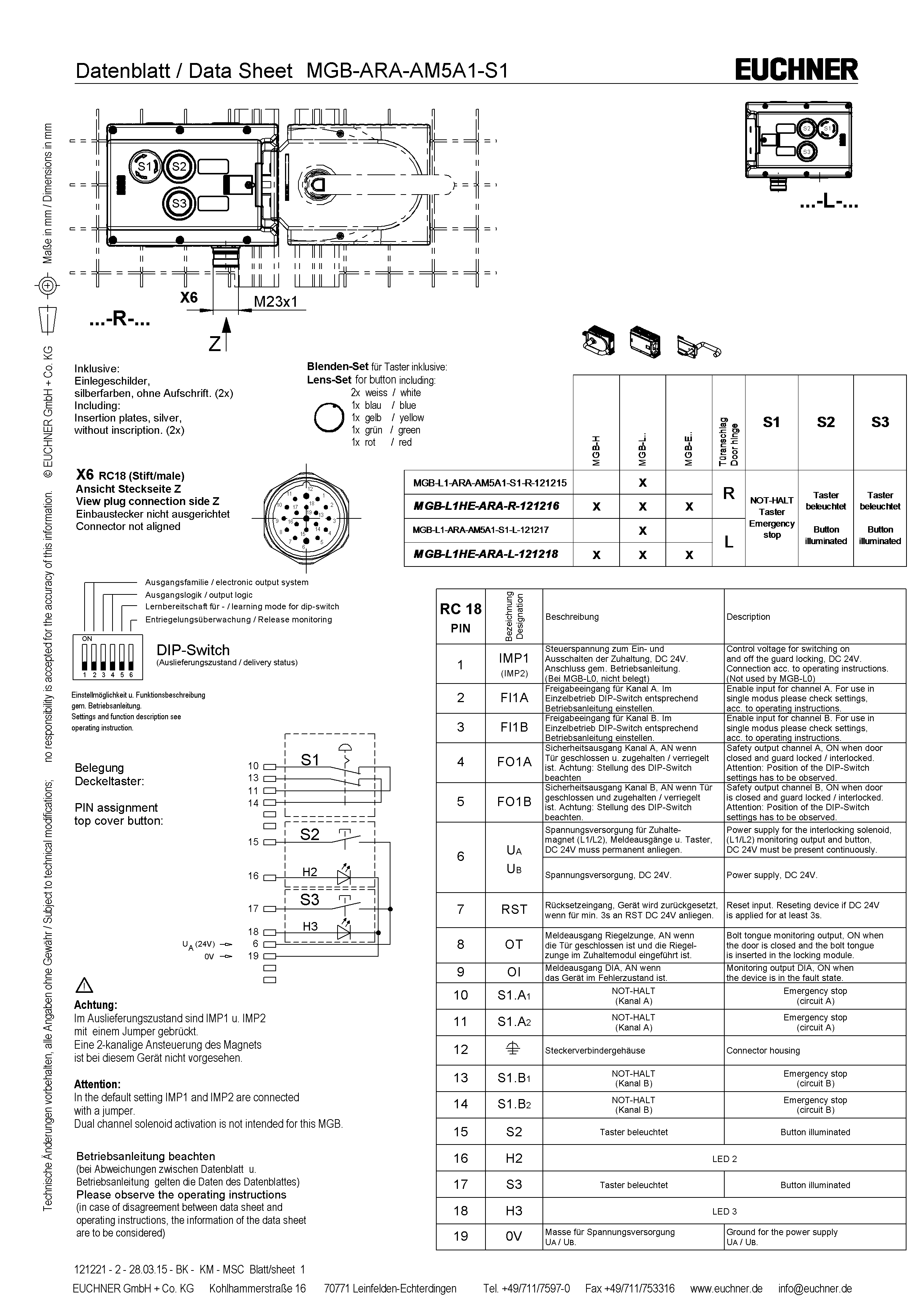 MGB-L1... | The locking arm is held in the locked position by spring force and is unlocked by solenoid force (closed-circuit current principle, mechanically locked). |
