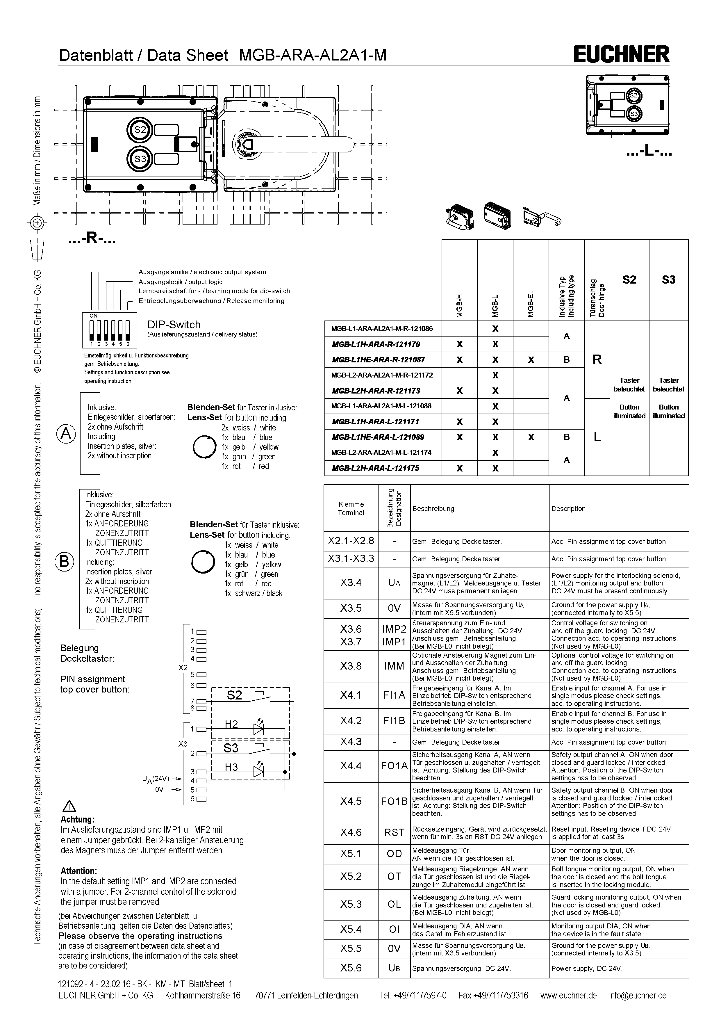 MGB-L2... | The locking arm is held in the locked position by solenoid force and is unlocked by spring force when the solenoid is switched off (open-circuit current principle, electrically locked). |