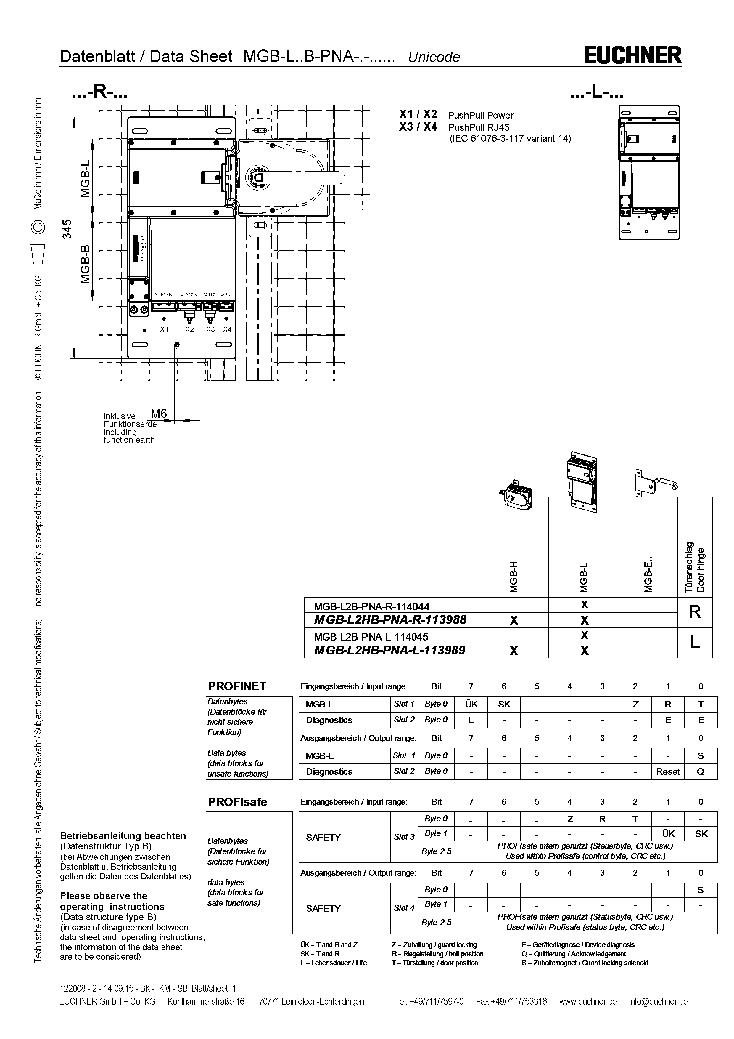 Betriebsanleitung Sicherheitssysteme MGB-L..B-PN.-… (PROFINET) und mit Datenstruktur Typ B