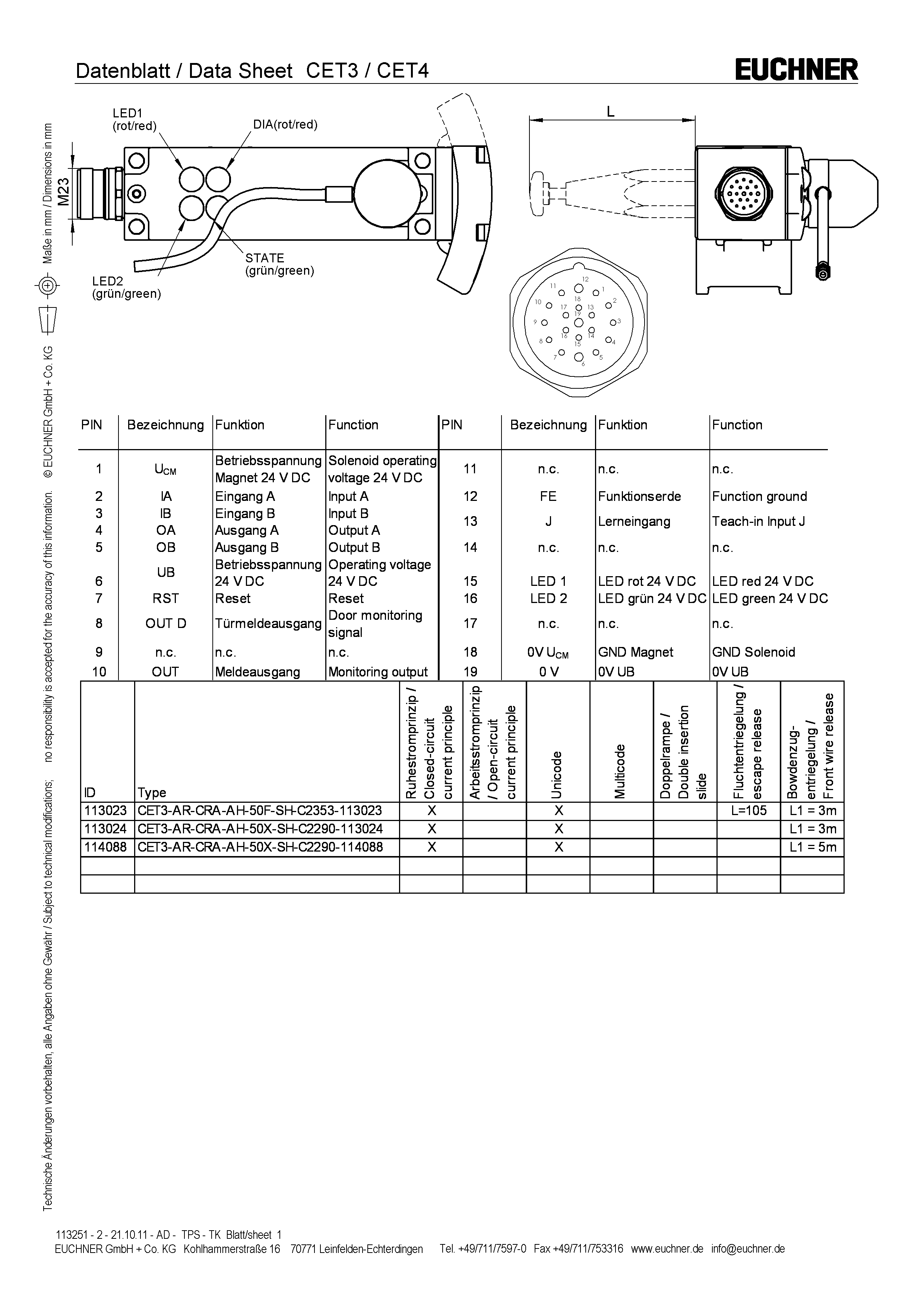 Safety switch with guard locking CET-AR-..., RFID, plug connector M23 (RC18), wire front release (bowden), escape release
