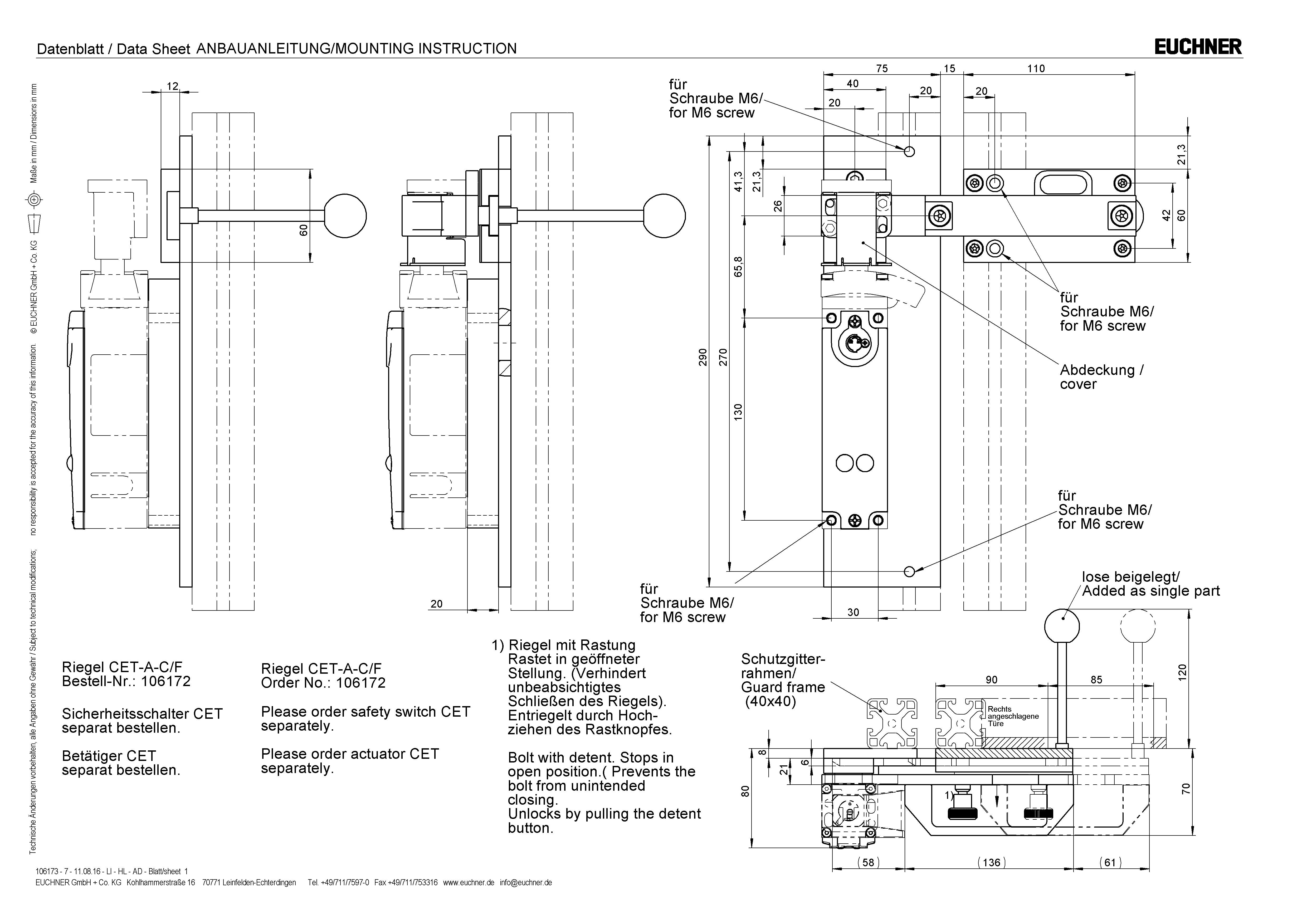 La cubierta AM-C-124721 impide eficazmente una manipulación del interruptor CET. La cubierta evita que se presione manualmente el perno de bloqueo pivotante del actuador con herramientas sencillas.