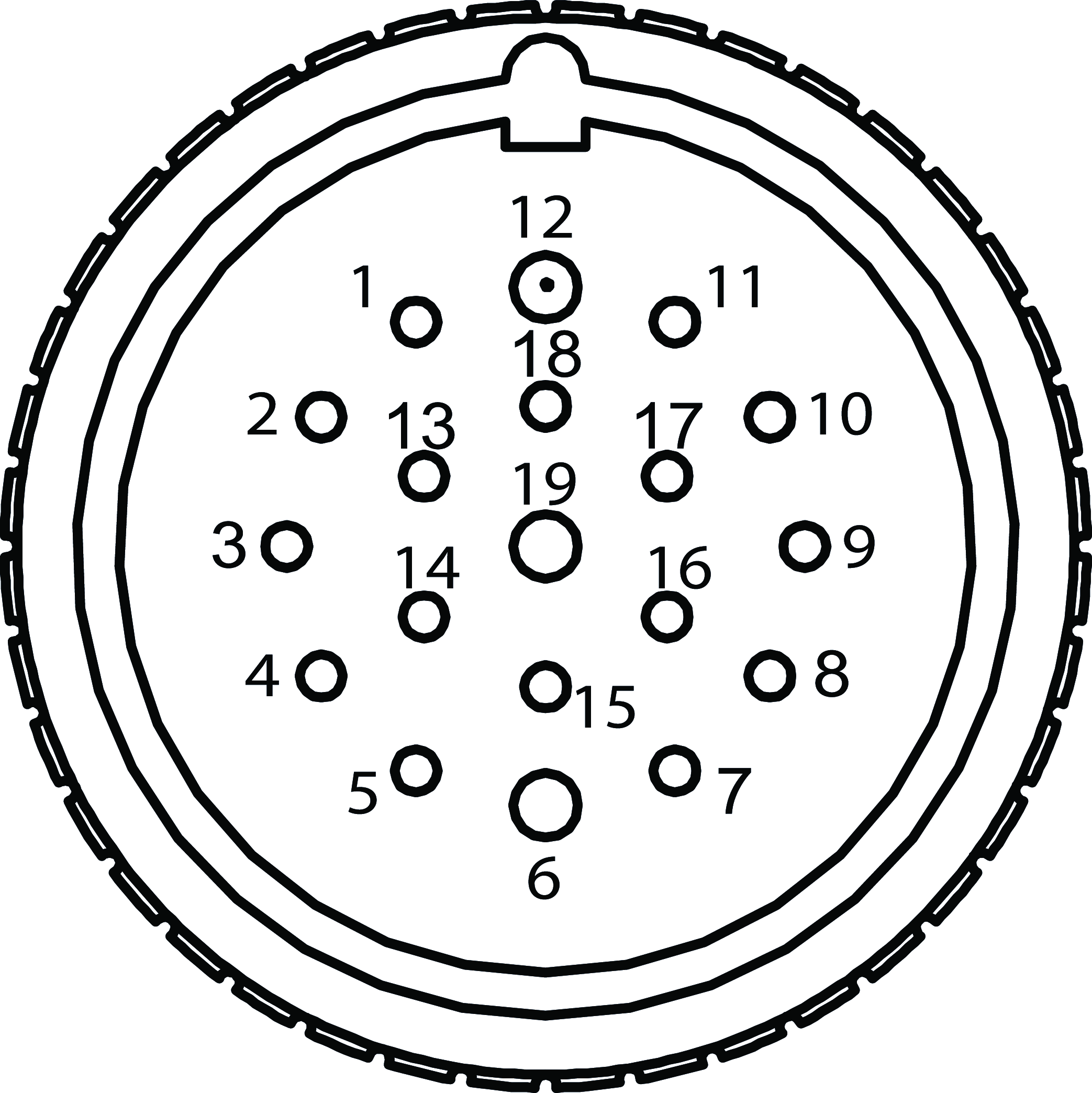 | 1 | Connecteur femelle avec écrou-raccord M23 - 19 broches sans blindage |