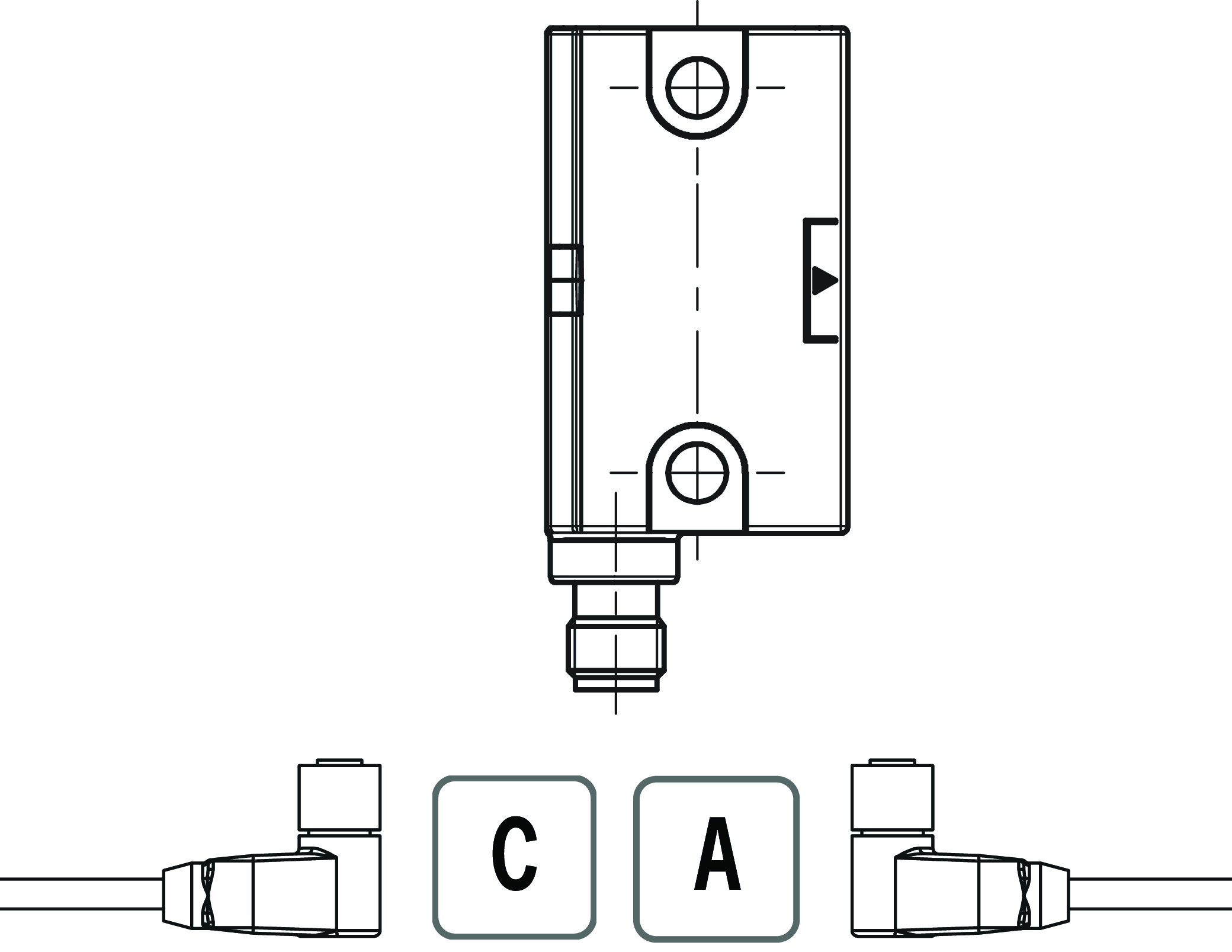 Pour la position de montage de l'appareil représentée : Départ de ligne C (gauche), Départ de ligne A (droite).