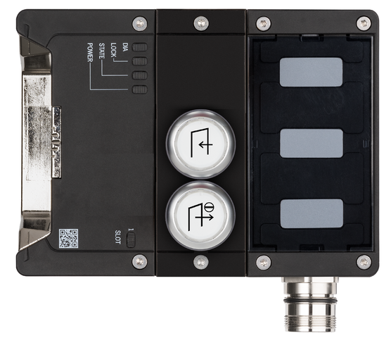 Module de verrouillage MGB2-I-BR... (M23, 2 boutons-poussoirs, butée de porte à gauche)