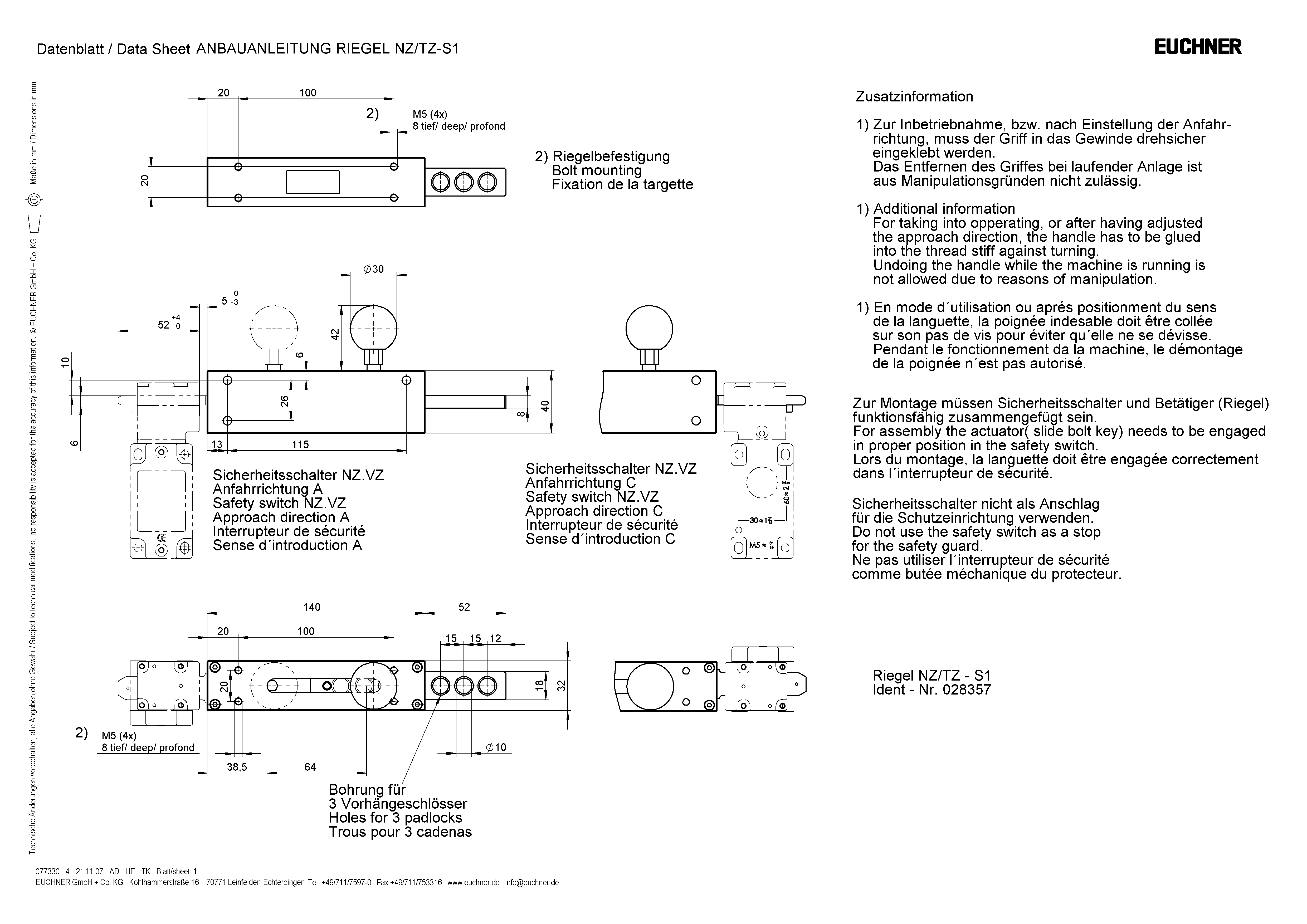 - 安全スイッチ NZ.VZ、NZ.VZ.VS および TZ 用ボルツ