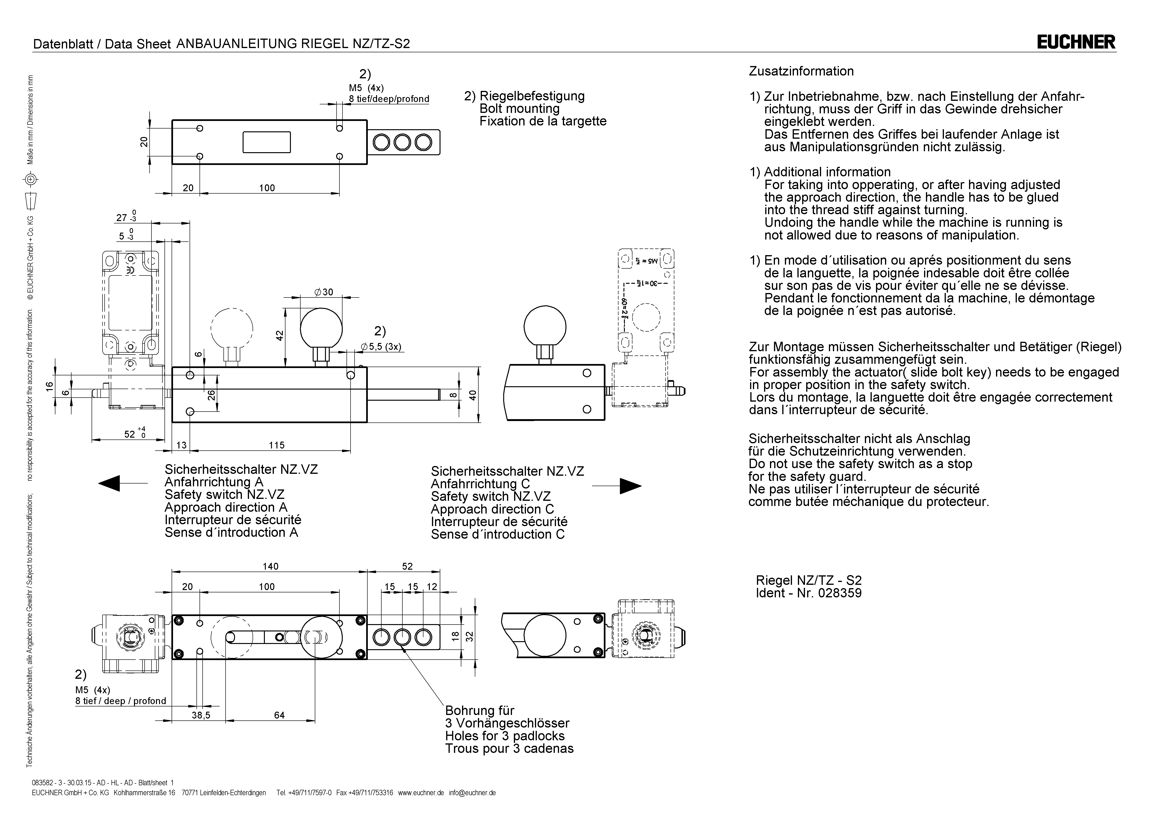- 安全スイッチ NZ.VZ、NZ.VZ.VS および TZ 用ボルツ
