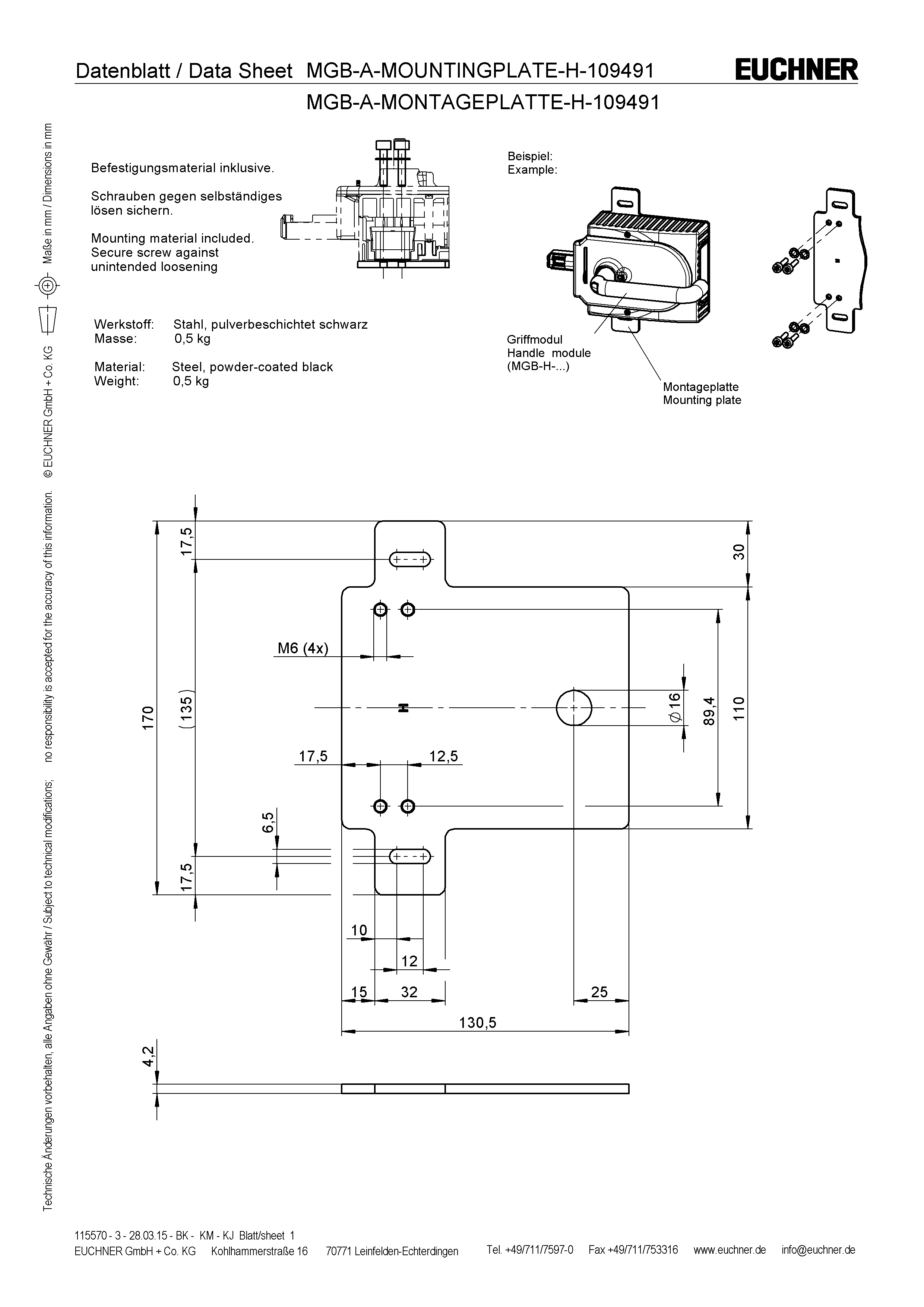 | Item designation | MGB-A-MOUNTINGPLATE-H-109491 |