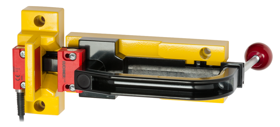 내장된 잠금 바를 이용하여, 예를 들어 자물쇠를 사용하여 볼트를 열린 위치에서 잠글 수 있습니다. 이를 통해 작업자가 위험 구역 내에 의도치 않게 갇히는 것을 방지할 수 있습니다.