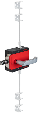 장비에서 청소 및 서비스 작업을 하기 위해 접이형 잠금 매커니즘을 사용하여 최대 3개의 자물쇠로 볼트 텅을 잠글 수 있습니다. 이렇게 하면 잠금 상태에서의 핸들 작동이 차단됩니다. 또한 핸들 구동 시 자동으로 연장되는 잠금 매커니즘(선택 사양)은 세 개의 추가 자물쇠용으로 사용할 수 있습니다.