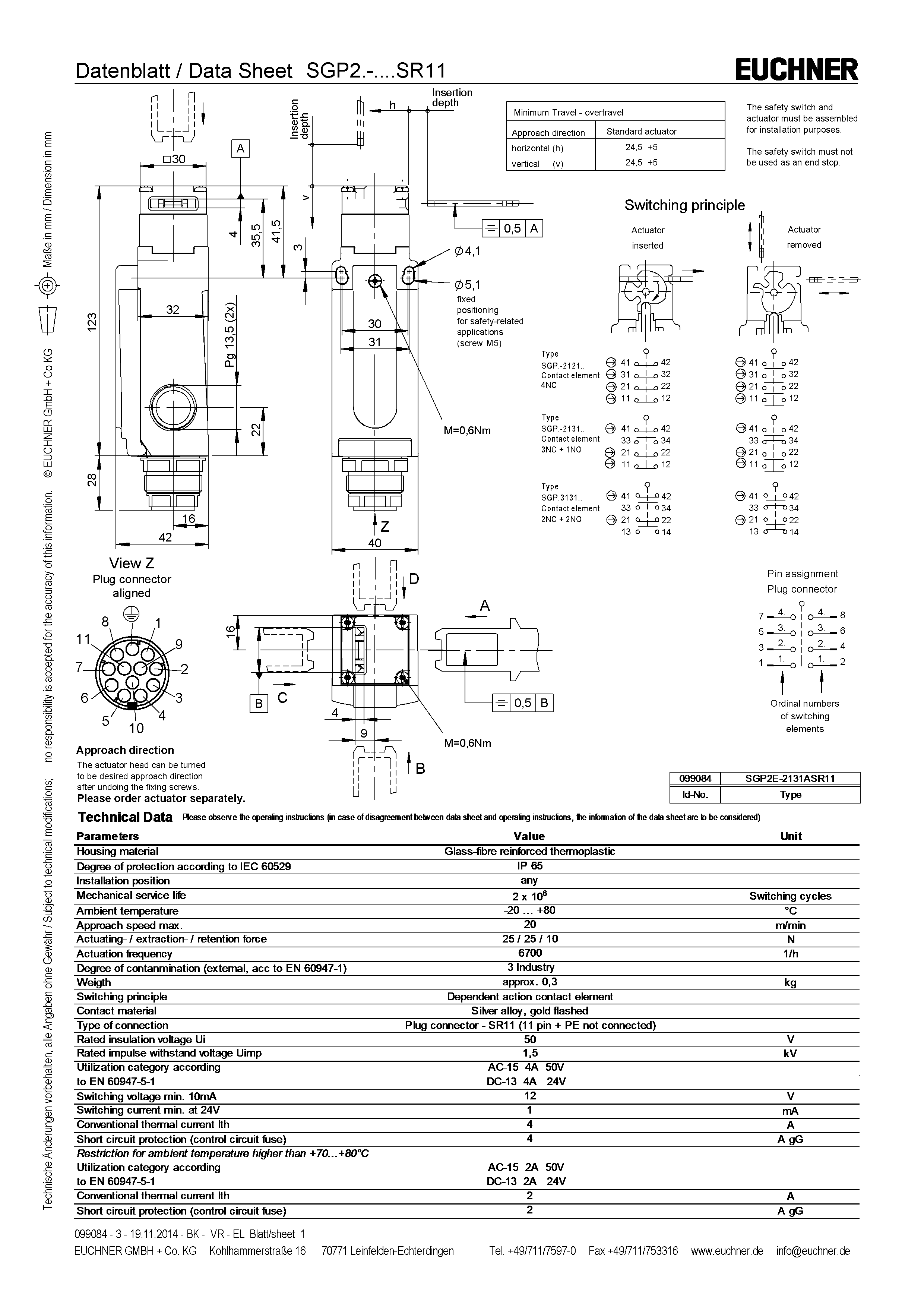 안전 스위치 SGP, 플러그 커넥터 SR11