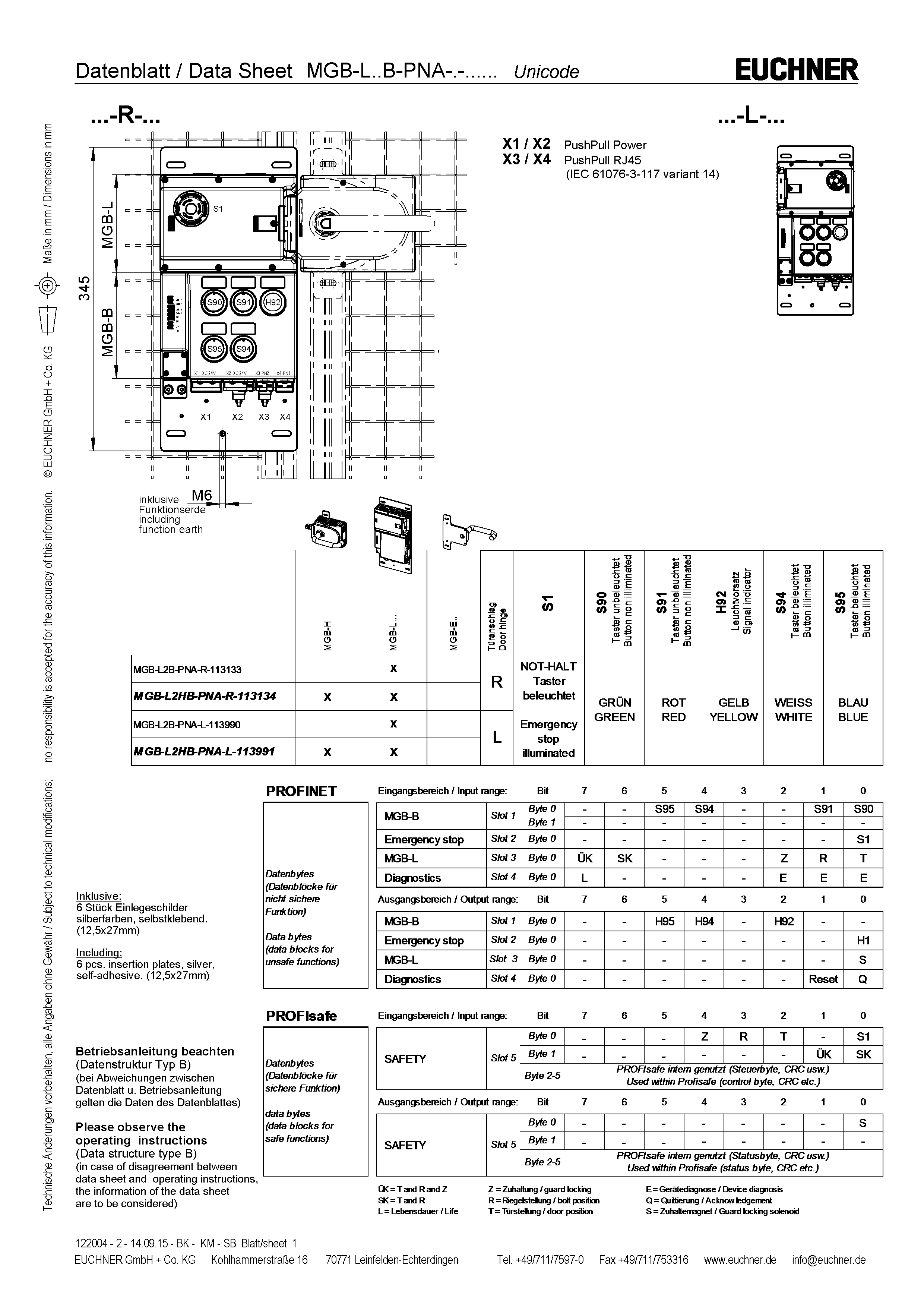 Betriebsanleitung Sicherheitssysteme MGB-L..B-PN.-… (PROFINET) und mit Datenstruktur Typ B