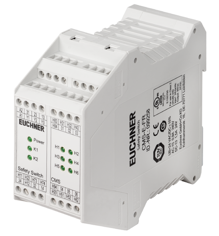 Dispositivo de avaliação CMS-E-FR, 2 contatos de segurança, 1 contato auxiliar, 6 saídas de monitoração, 1 circuito de retorno conectável