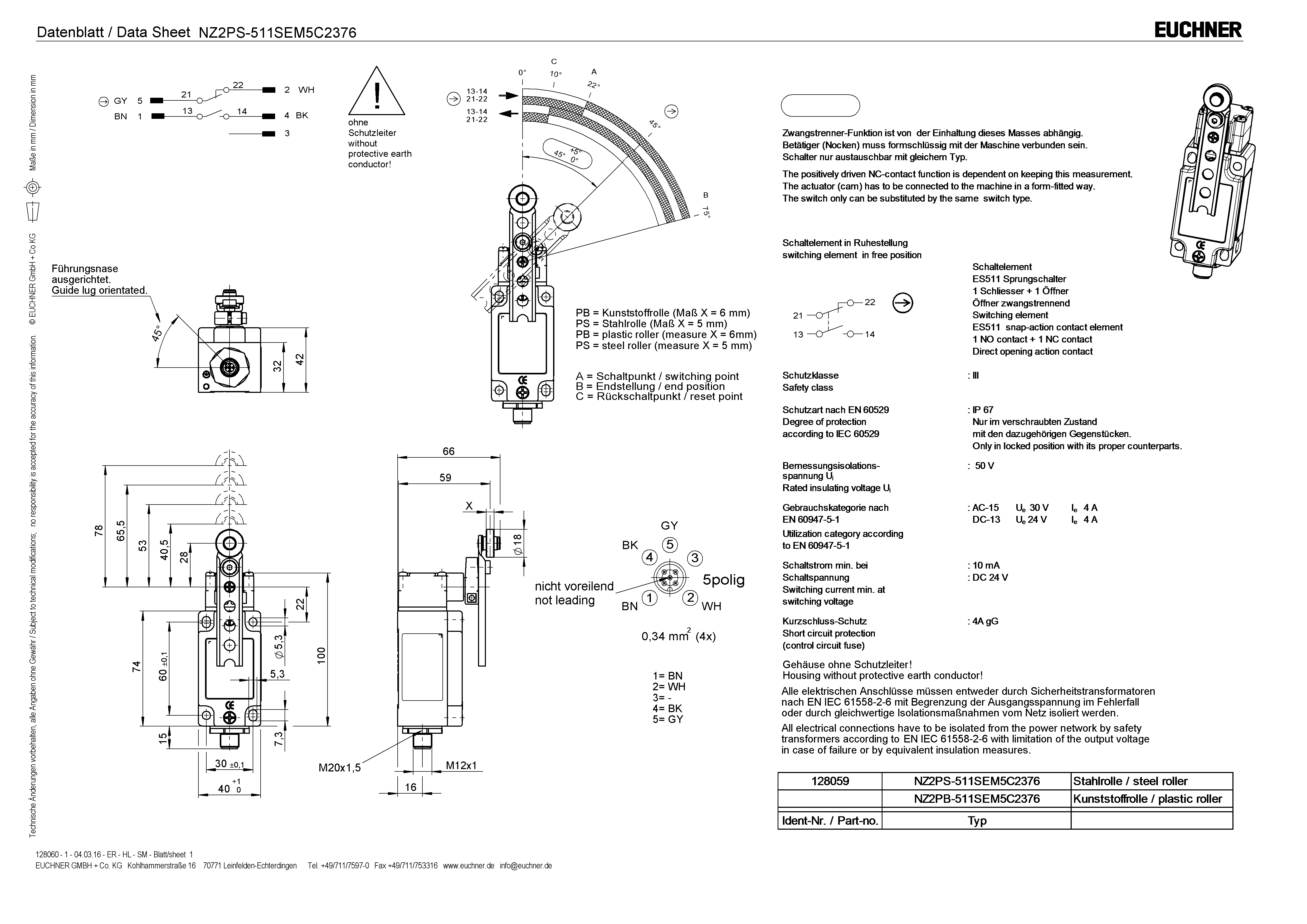 HomeProdukteChaves de segurança eletromecânicas sem bloqueioN1A / NB01 Chave de fim de curso simples, chave de posição NZ e chave de fim de curso embutida EGZNZ2PS-511SEM5C2376
