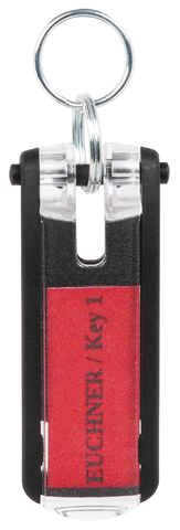 Mit dem Schlüsselanhänger kann ein CKS / CKS2 Schlüssel individuell gekennzeichnet werden. Dazu wird ein entsprechend beschriftetes Einsteckschild unter das Sichtfenster des Schlüsselanhängers eingesteckt.