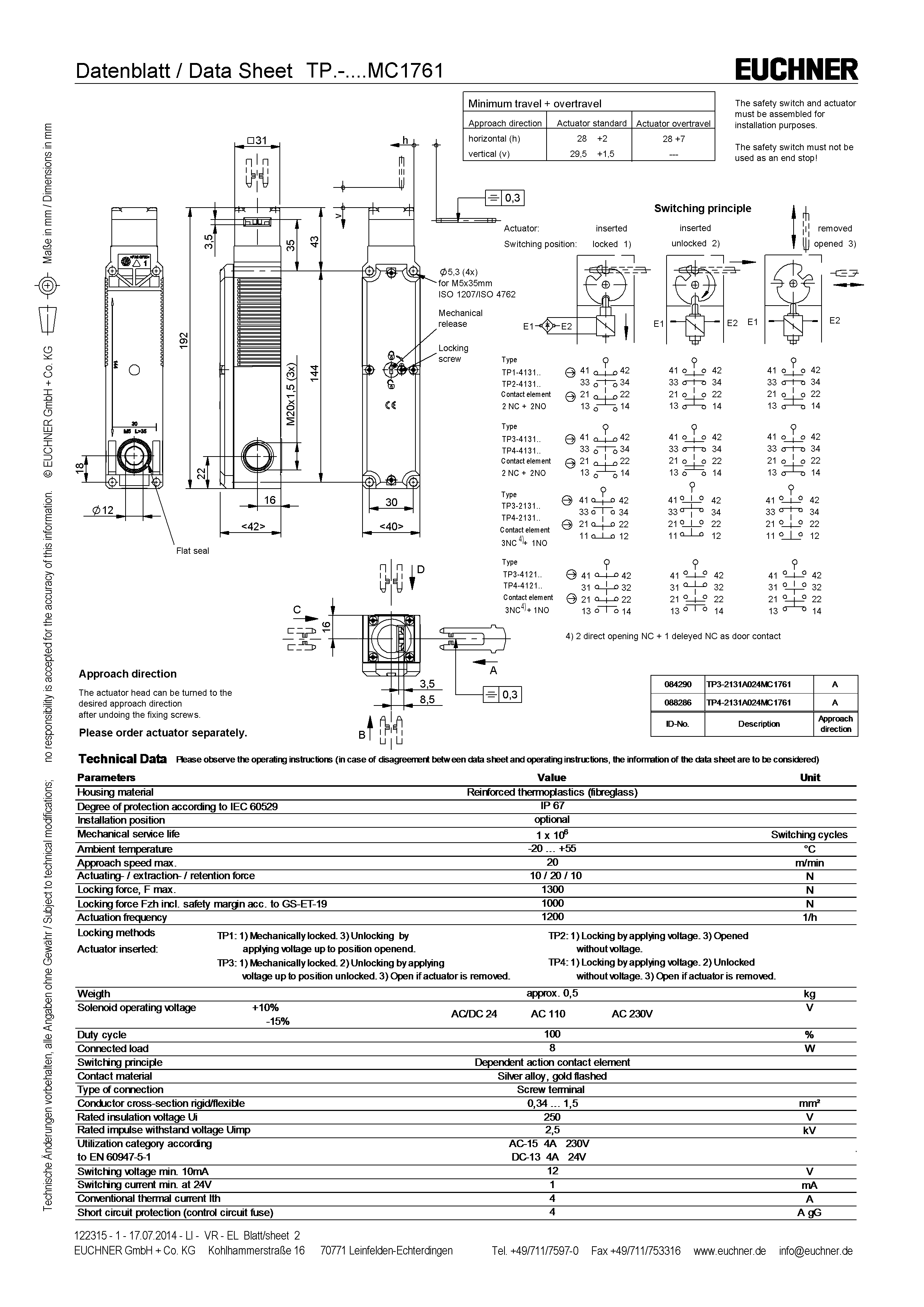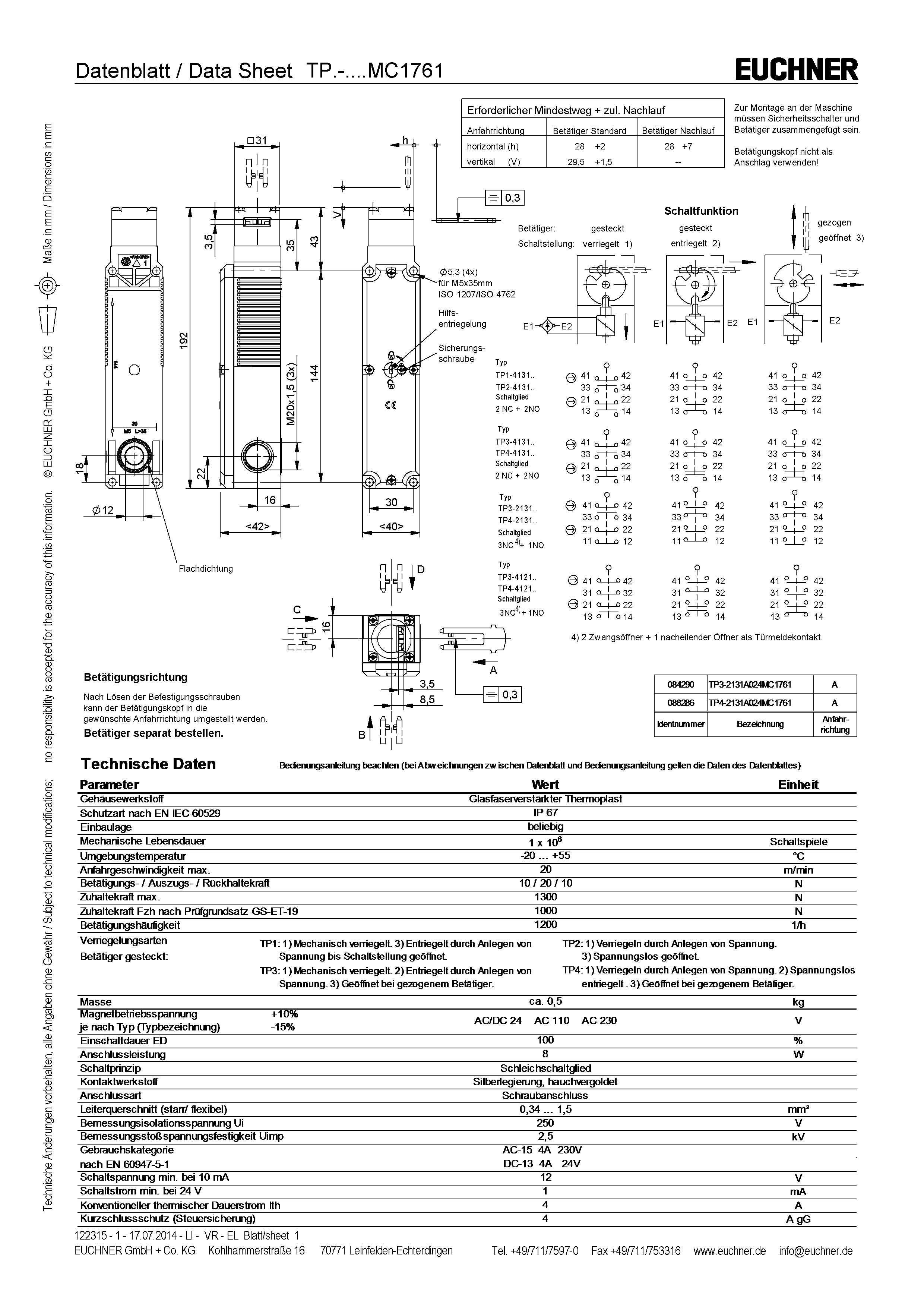 | Wichtig! Werte gültig bei DC-13 100 mA/24V | ||