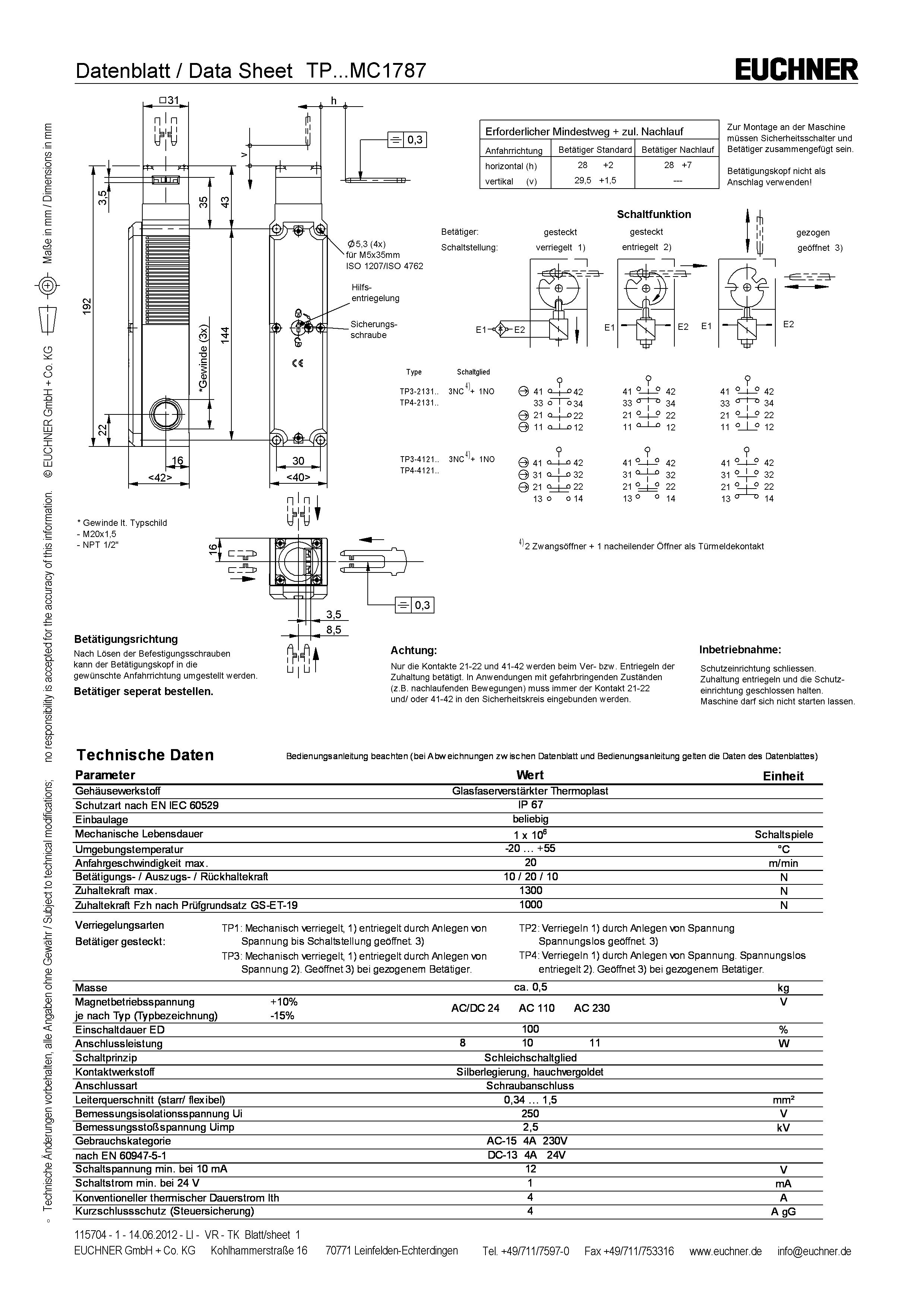 | Wichtig! Werte gültig bei DC-13 100 mA/24V | ||