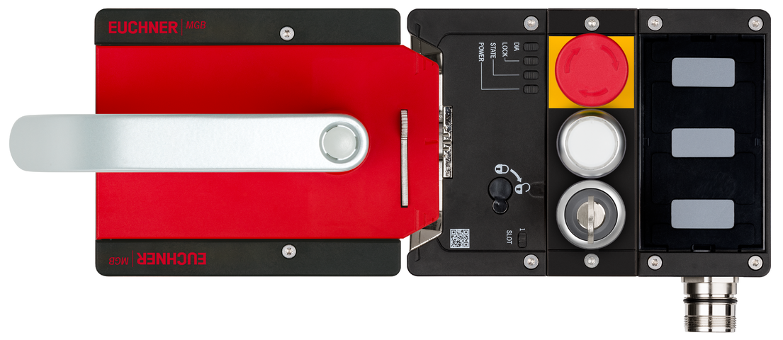Komplettset MGB2-L1...-BR (M23, 1 Drucktaster, Not-Halt, 1 Schlüsselschalter Form L, Ruhestromprinzip, Türanschlag links)