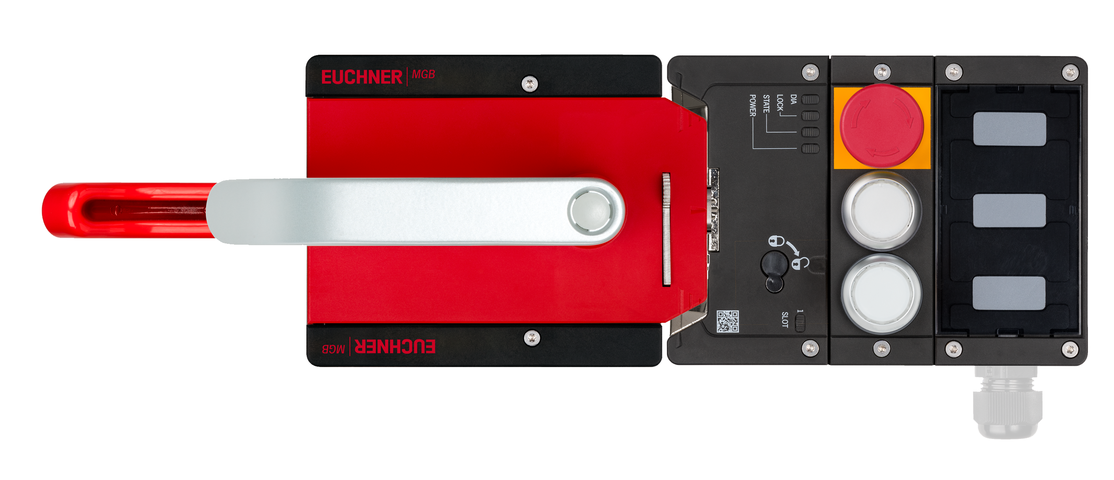 Komplettset MGB2-L1HE-BR (2 Drucktaster, Not-Halt, mit Fluchtentriegelung, Ruhestromprinzip, Türanschlag links)