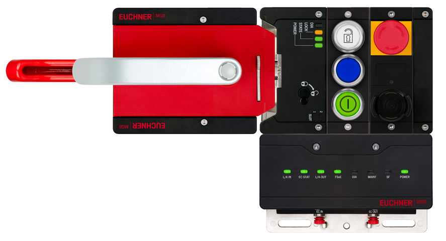 Komplettset MGB2-L1...-EC (3 Drucktaster, Not-Halt, CKS2 Schlüsselaufnahme, Einlegeschild, Ruhestromprinzip, Türanschlag links)