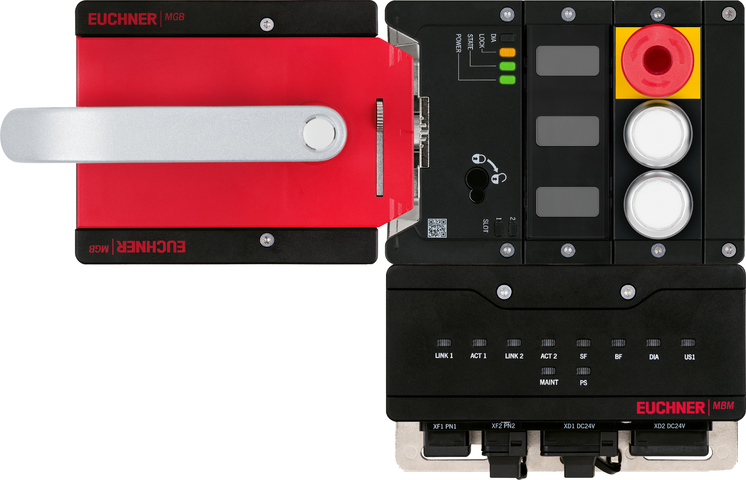 Komplettset MGB2-L1...-PN (2 Drucktaster, Not-Halt, Einlegeschilder, Ruhestromprinzip, Türanschlag links)