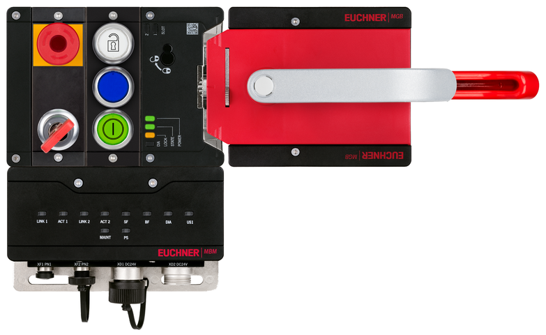 Komplettset MGB2-L1...-PN (3 Drucktaster, Not-Halt, Schlüsselschalter, Ruhestromprinzip, Türanschlag rechts)