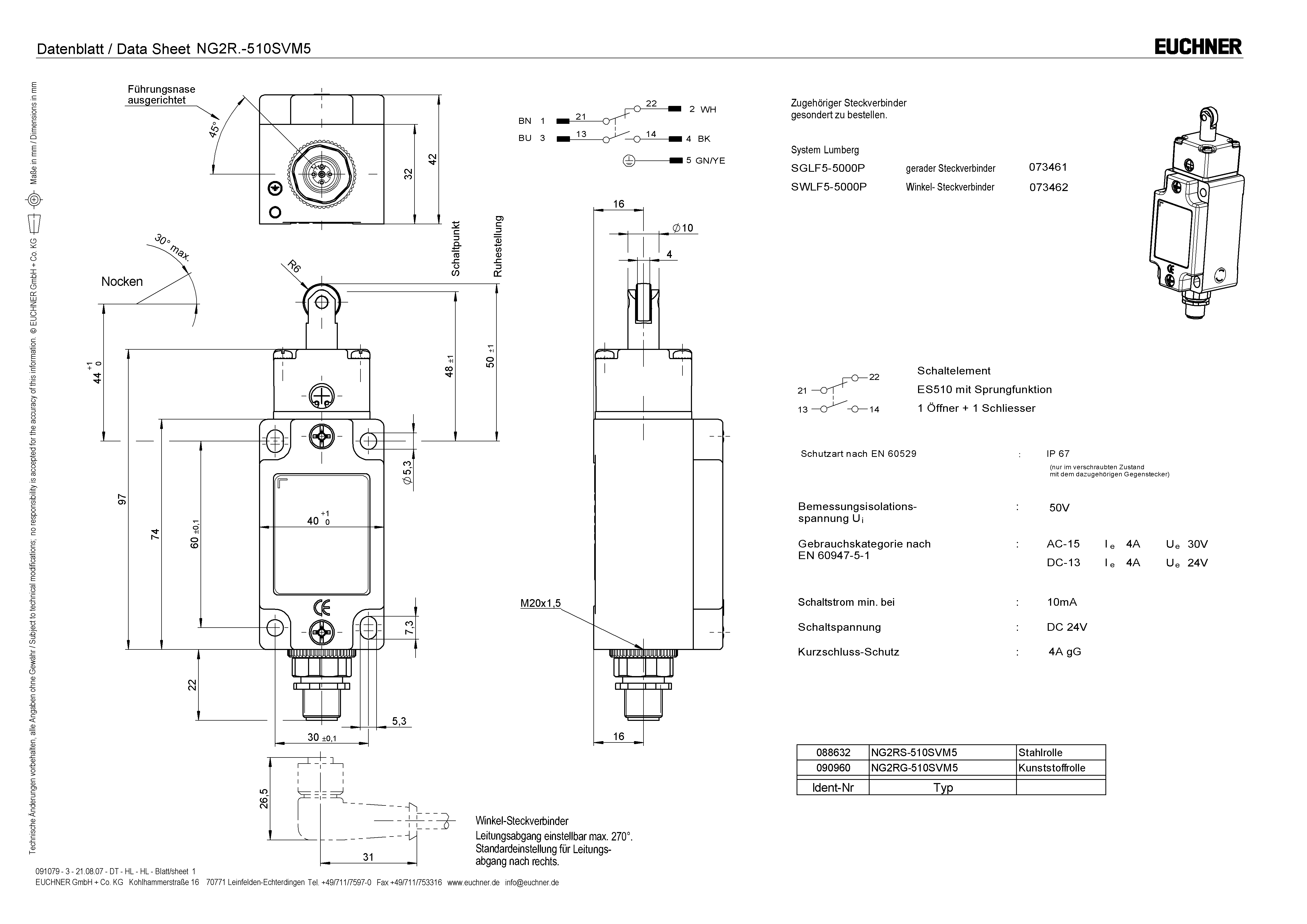 Positionsschalter NG.RG, Kunststoffrolle, Steckverbinder SVM5