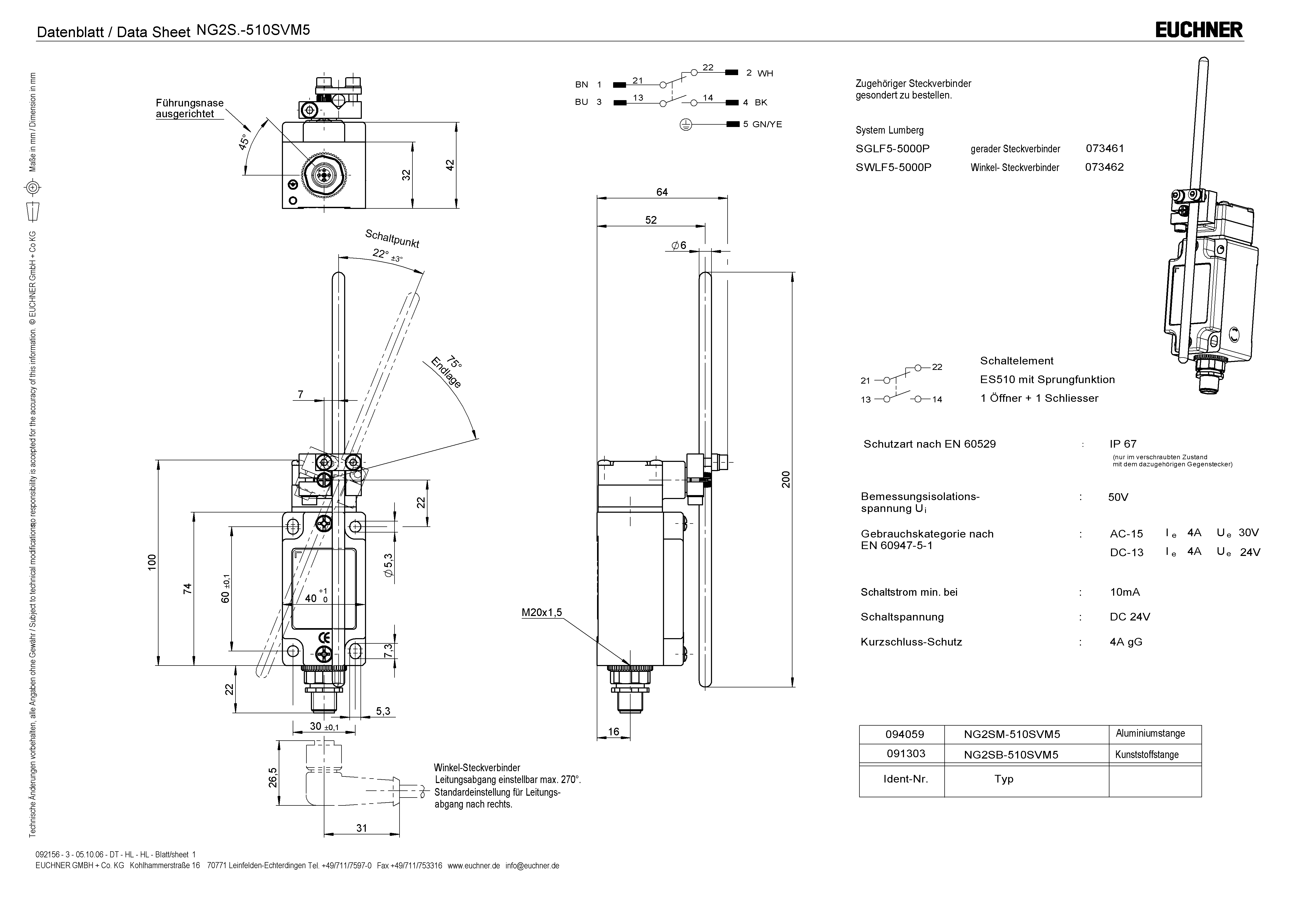 Positionsschalter NG.SB, Steckverbinder SVM5, Kunststoffstange