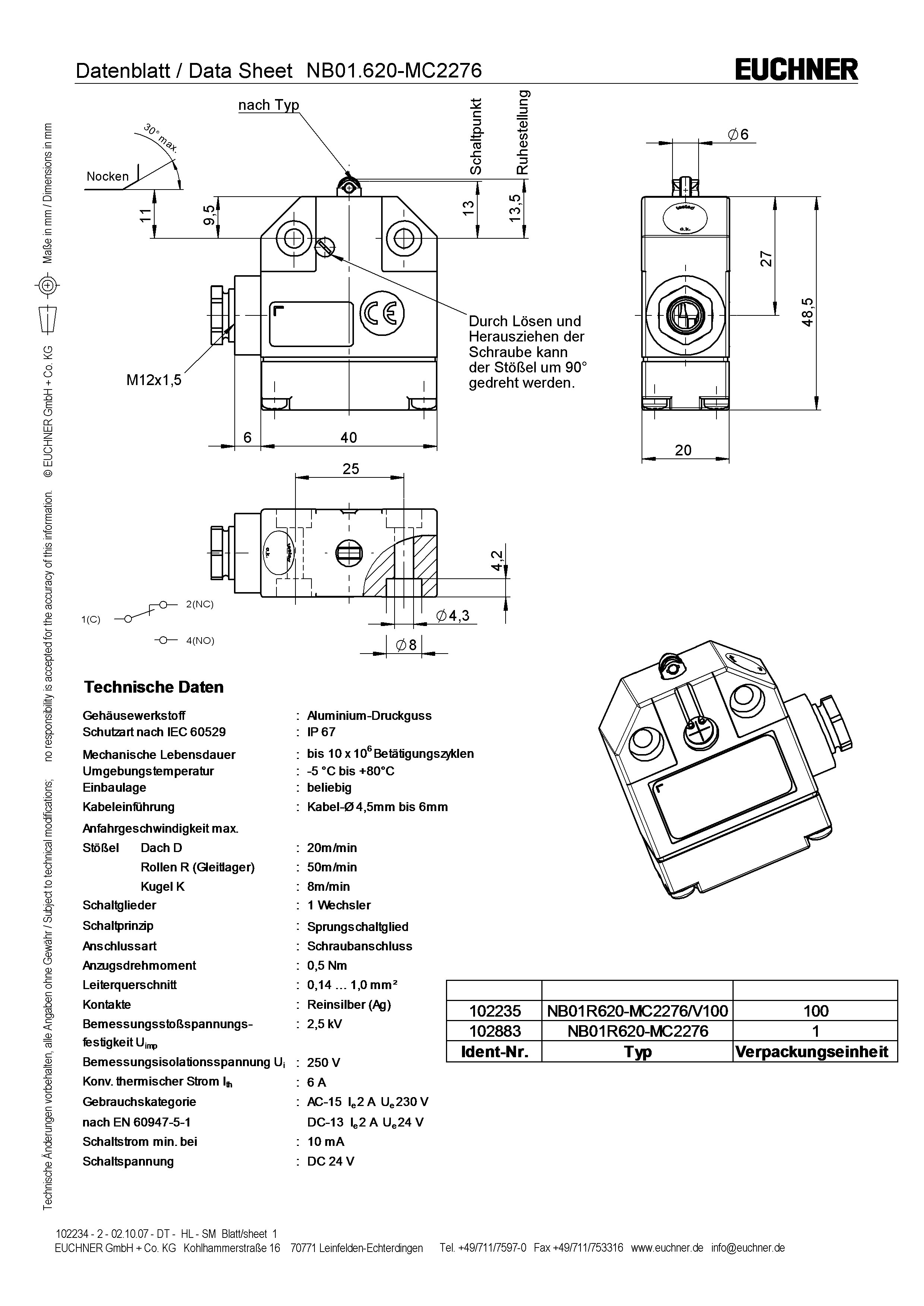 | ECLASS | 27-27-06-01 Positionsschalter (Bauart 1) |