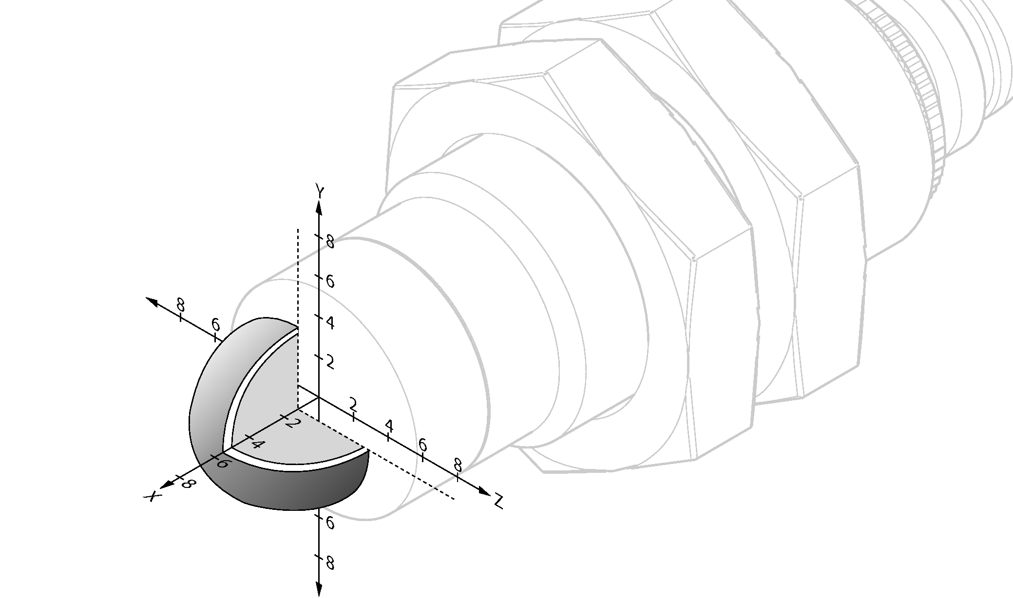 | 1) | Freizone (Bereich der aktiven Fläche ohne Metallgehäuse) |
