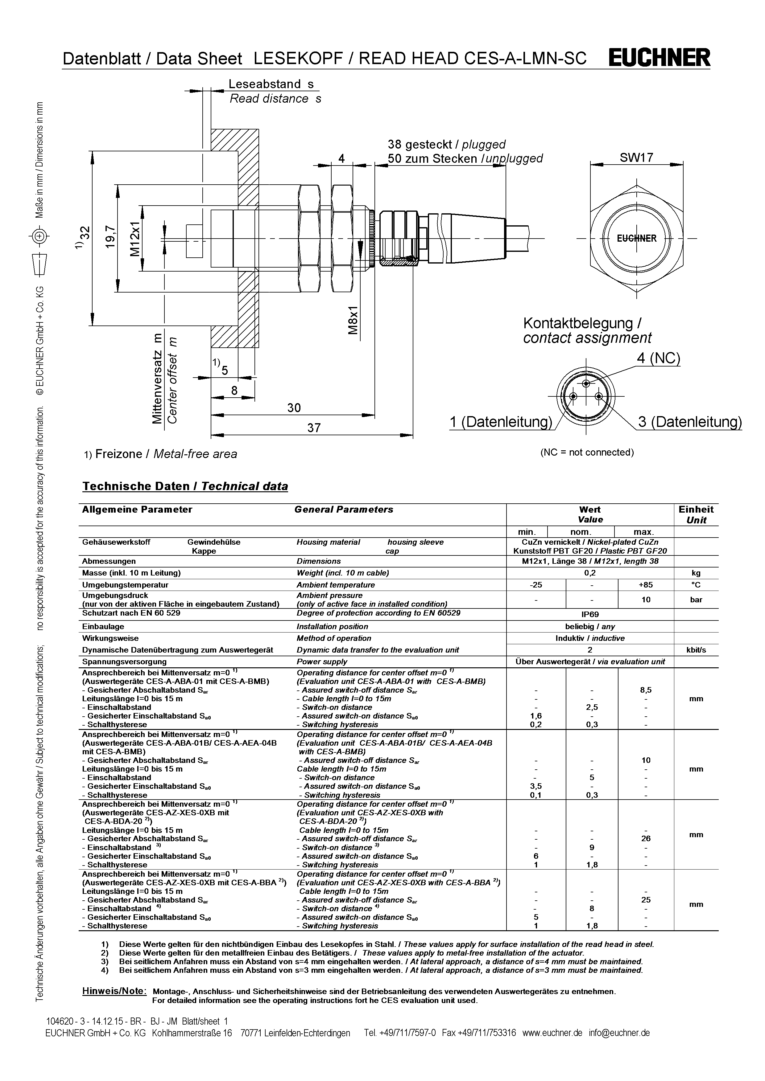Lesekopf CES-A-LMN-SC, M8 Steckverbinder