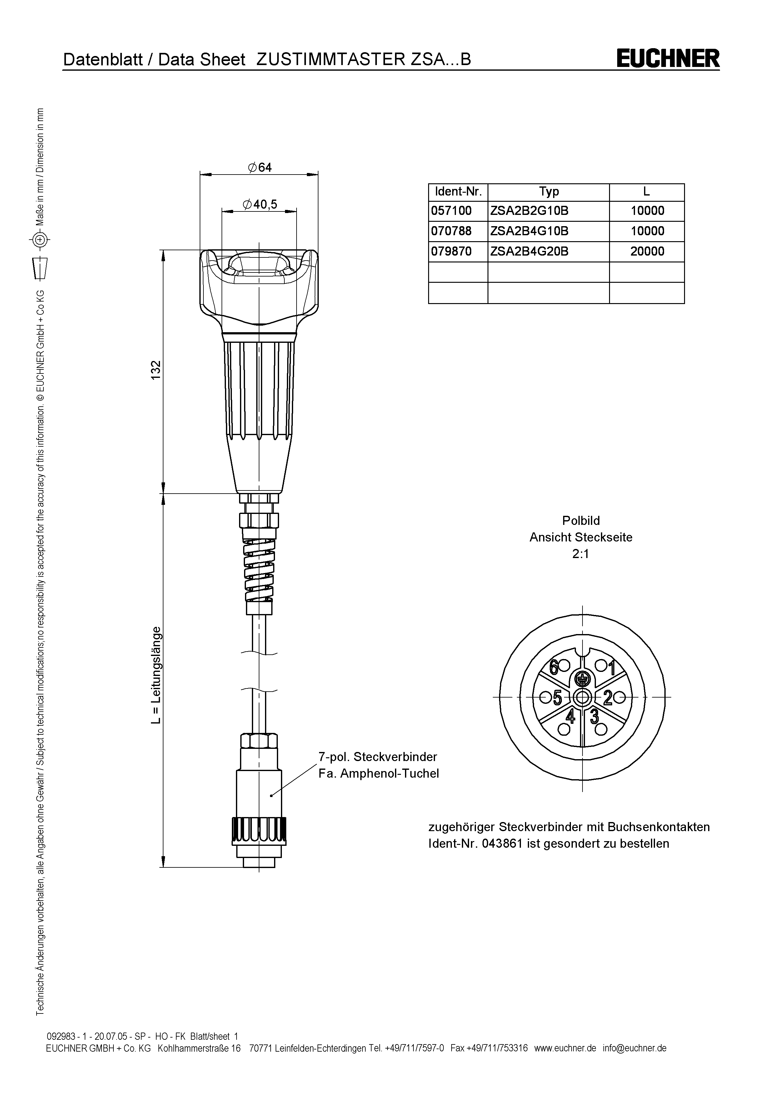 | 4 | zugehöriger Steckverbinder mit Buchsenkontakten Ident-Nr. 043861 ist gesondert zu bestellen |