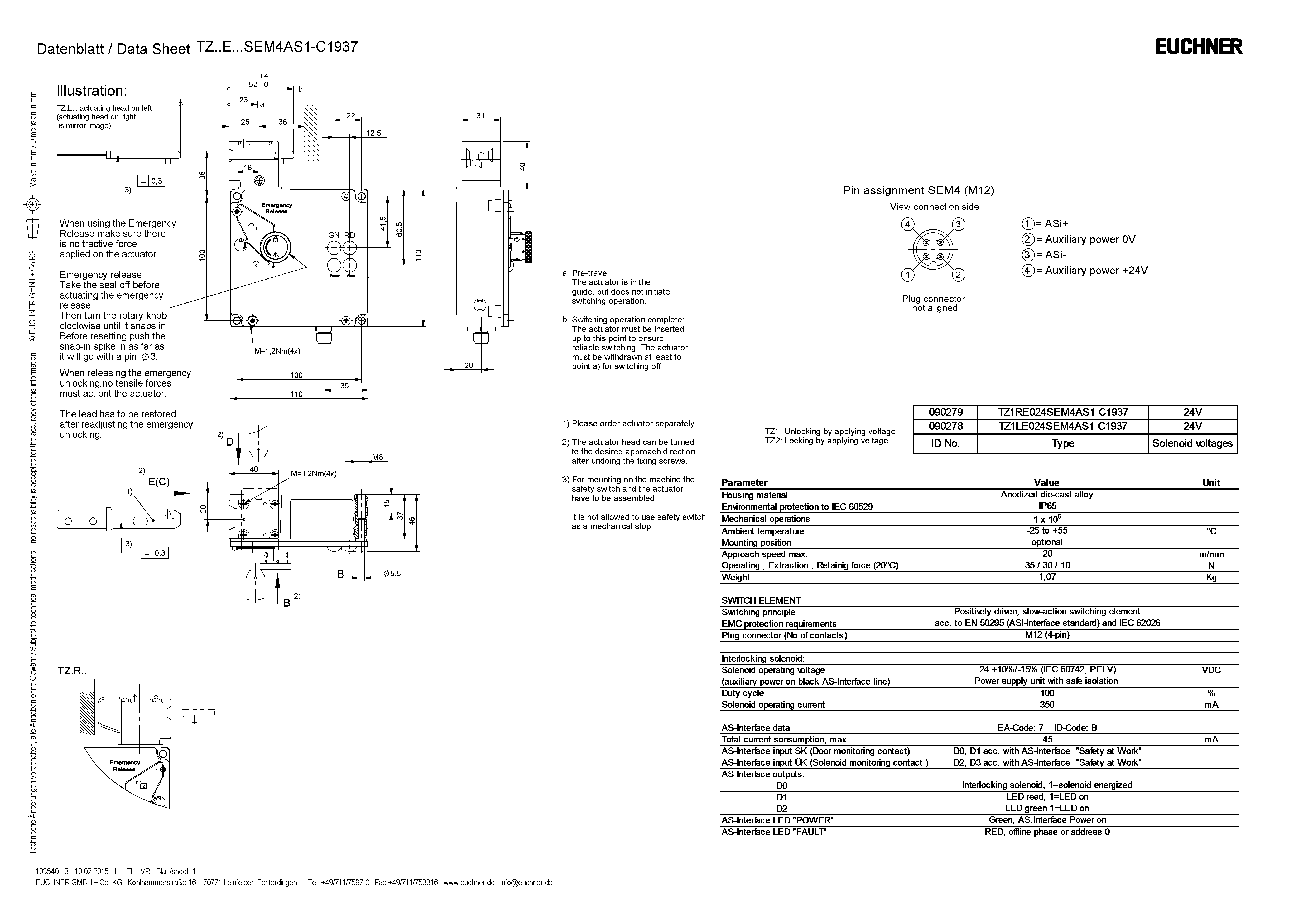 Инструкция по эксплуатации Предохранительный выключатель TZ…AS1