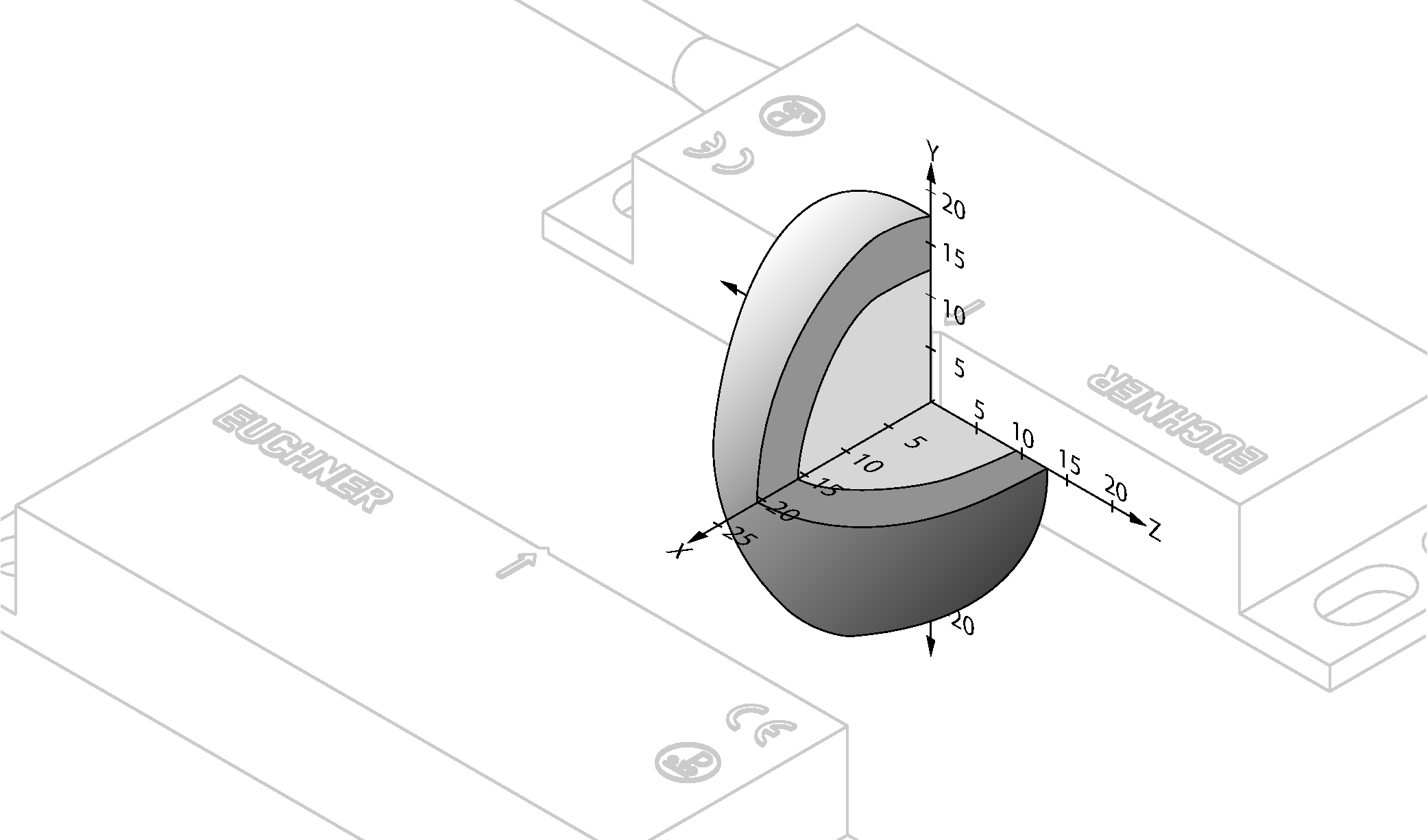 | 中心距偏移量m=0 | min. 10 mm (图仅适用于读头和触发块附近没有铁磁材料的情况。) |